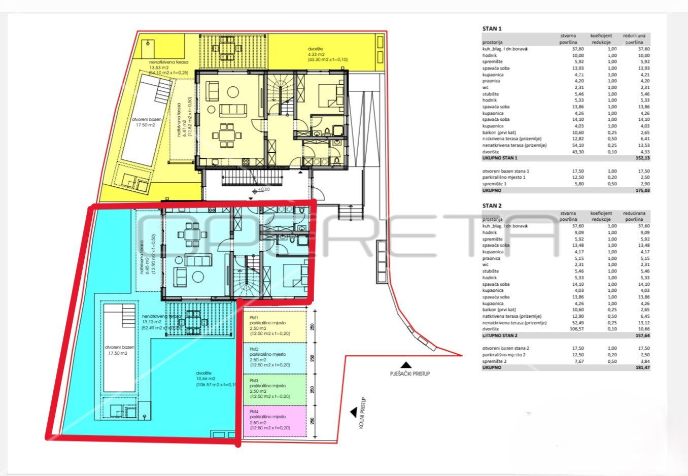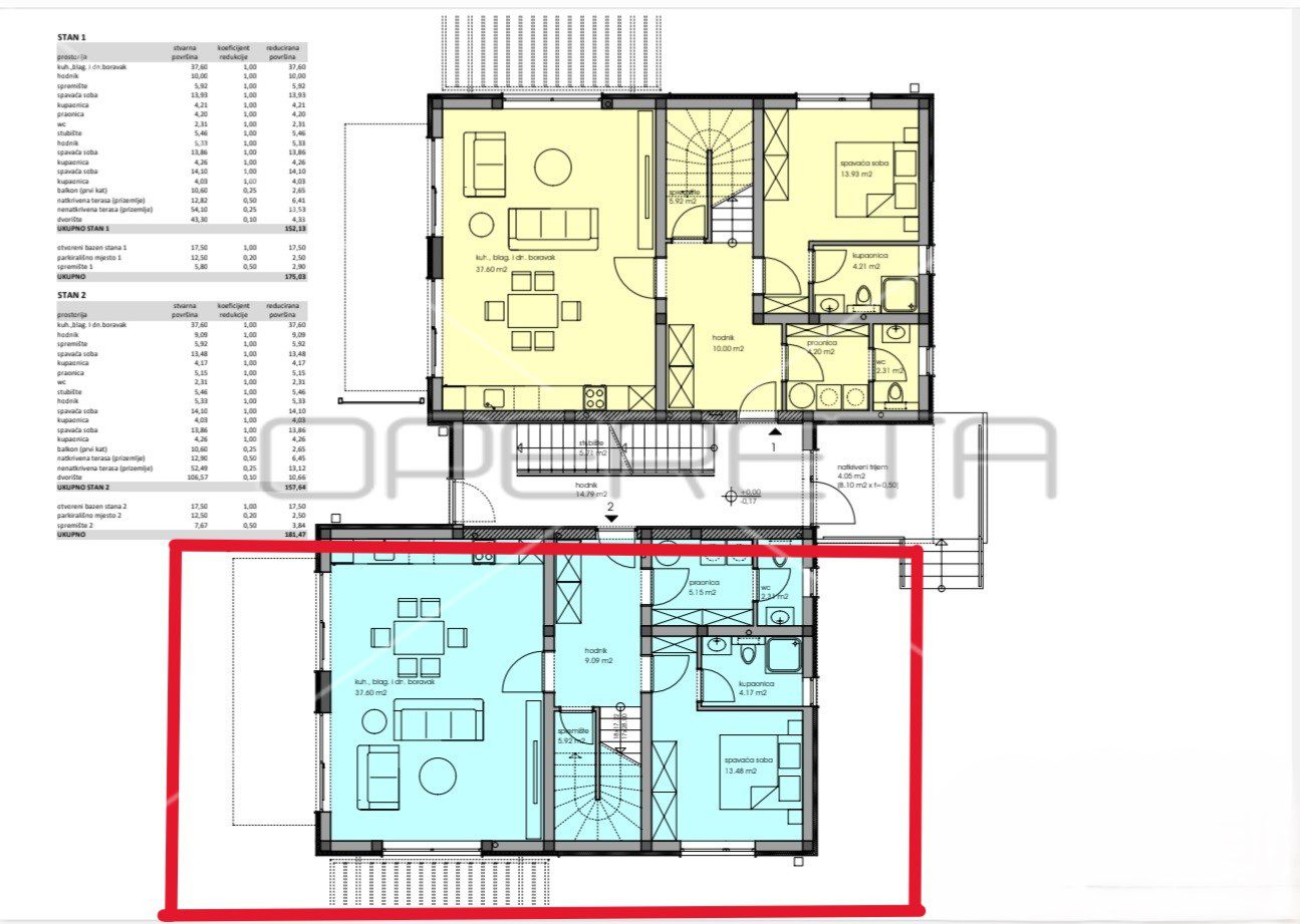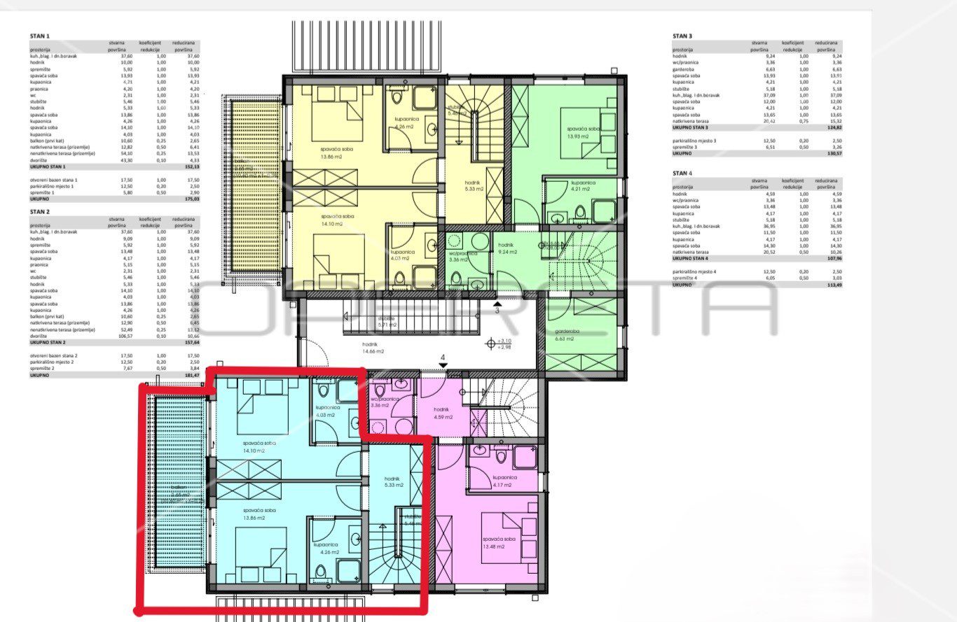 Prodaje se dvoetažan stan S2 ukupne površine 157,64m2 sa bazenom i prelijepim pogledom na more