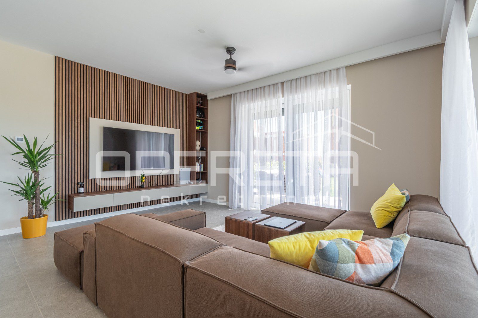 U dnevnom boravaku, kupaonicama i hodnicima postavljena je prvoklasna keramika dok se u sobama će se nalazi troslojni parket od hrasta.