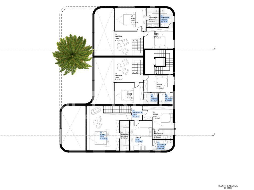 iz naše ponude izdvajamo luksuzan dvoetažni stan površine 217 m², smješten na iznimno atraktivnoj lokaciji svega 300 metara od mora. Ova sofisticirana nekretnina proteže se na dvije etaže, a odlikuje je izniman komfor, suvremen dizajn i vrhunska oprema.
