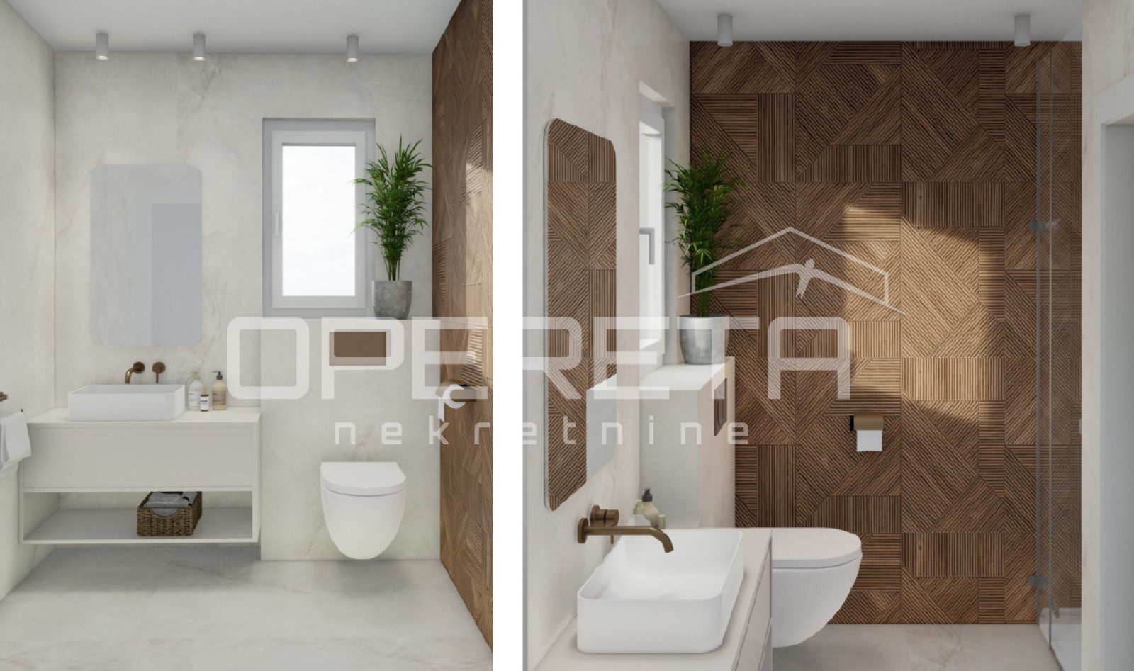 Oprema stana uključuje podno grijanje u cijelom prostoru, klima uređaj, keramiku vrhunske talijanske kvalitete te sanitarije marke Villeroy & Boch.