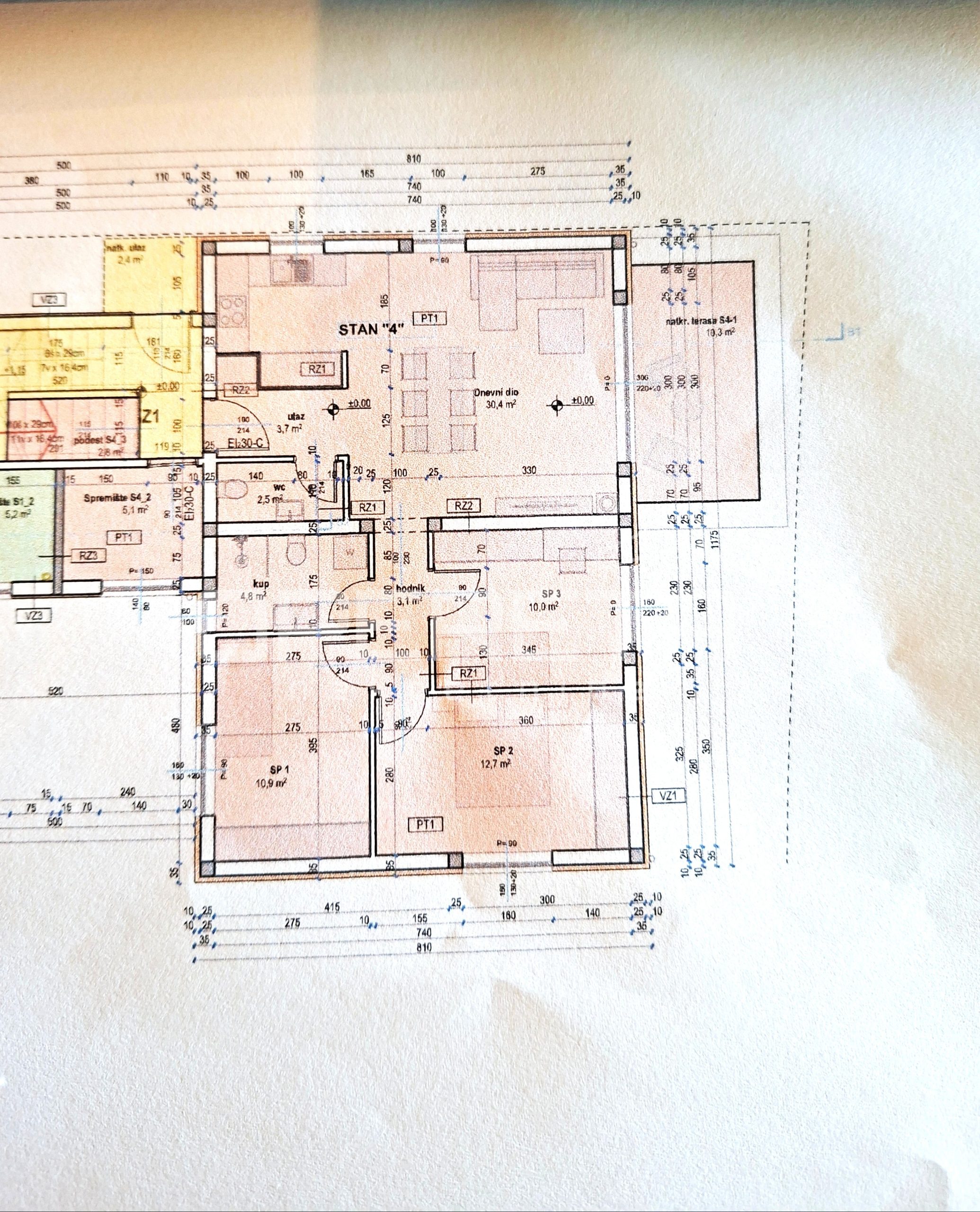 Površina stana iznosi 87 m2 te se sastoji od prostranog dnevnog boravka s kuhinjom i blagovaonicom, 3 spavaće sobe, kupaonice, toaleta, hodnika, spremišta i natkrivene terase s koje se pruža pogled na prirodu.
