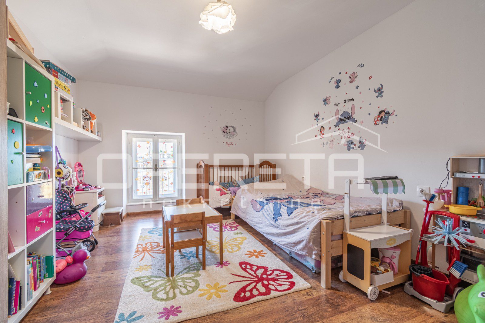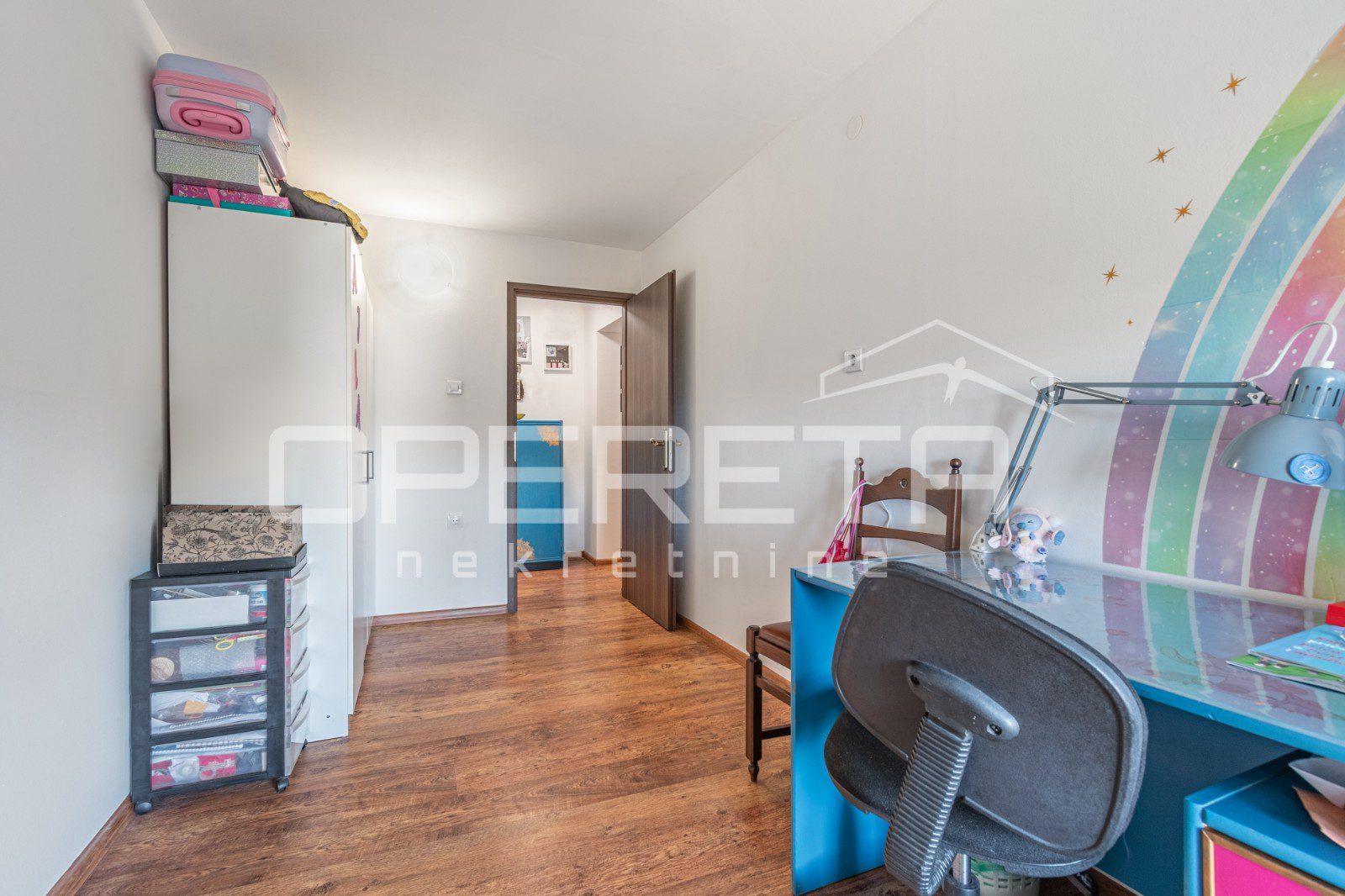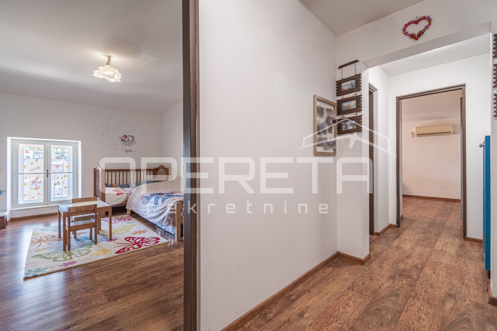 Stan je odličnog rasporeda, a sastoji se od predsoblja, dnevnog boravka sa novim krovnim prozorima na daljinsko upravljanje, hodnika, kuhinje sa blagovaonicom, tri spavaće sobe i dvije ostave.