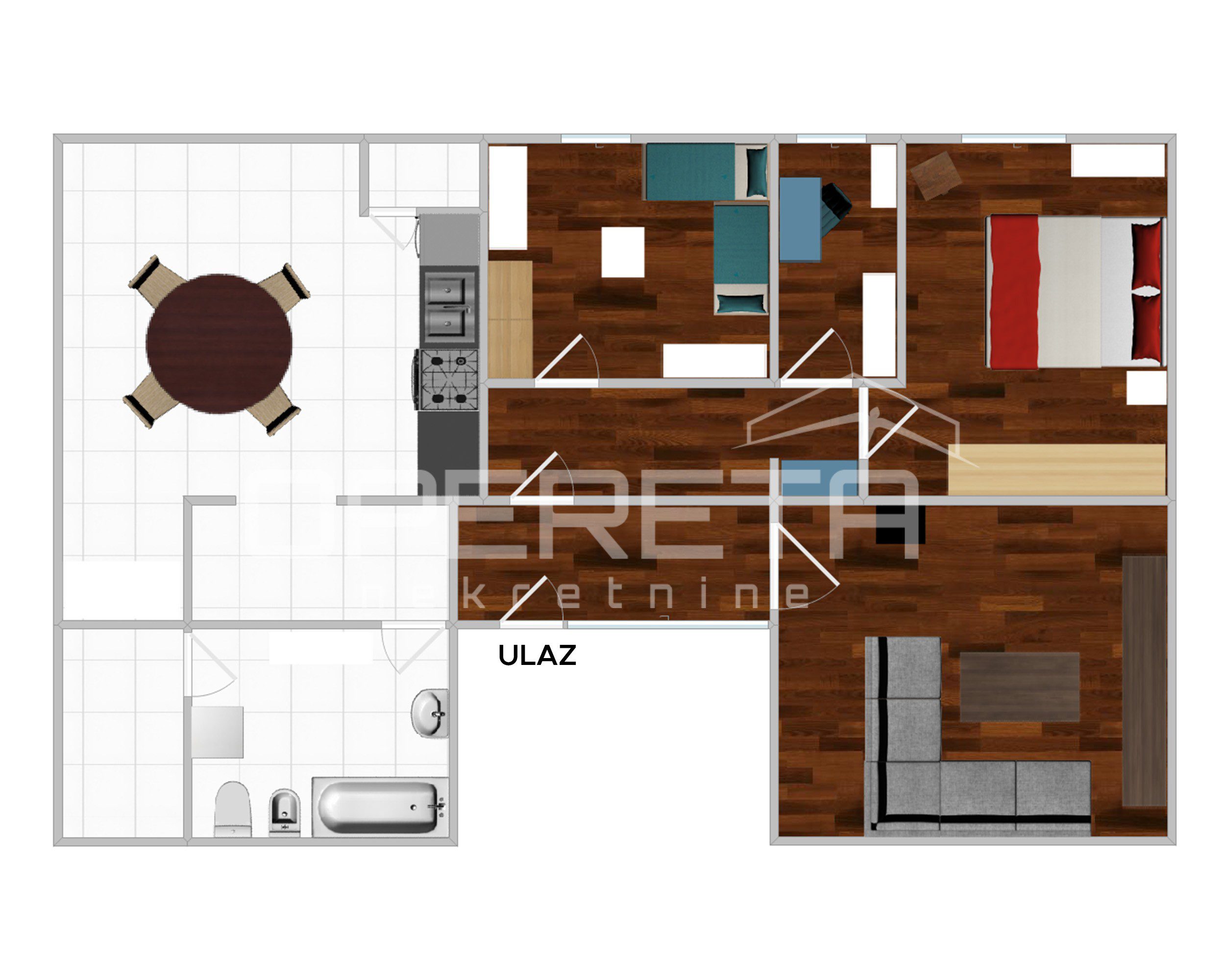 U jednom od najtraženijih kvartova Pule prodaje se prostrani trosobni stan ukupne površine 102 m².