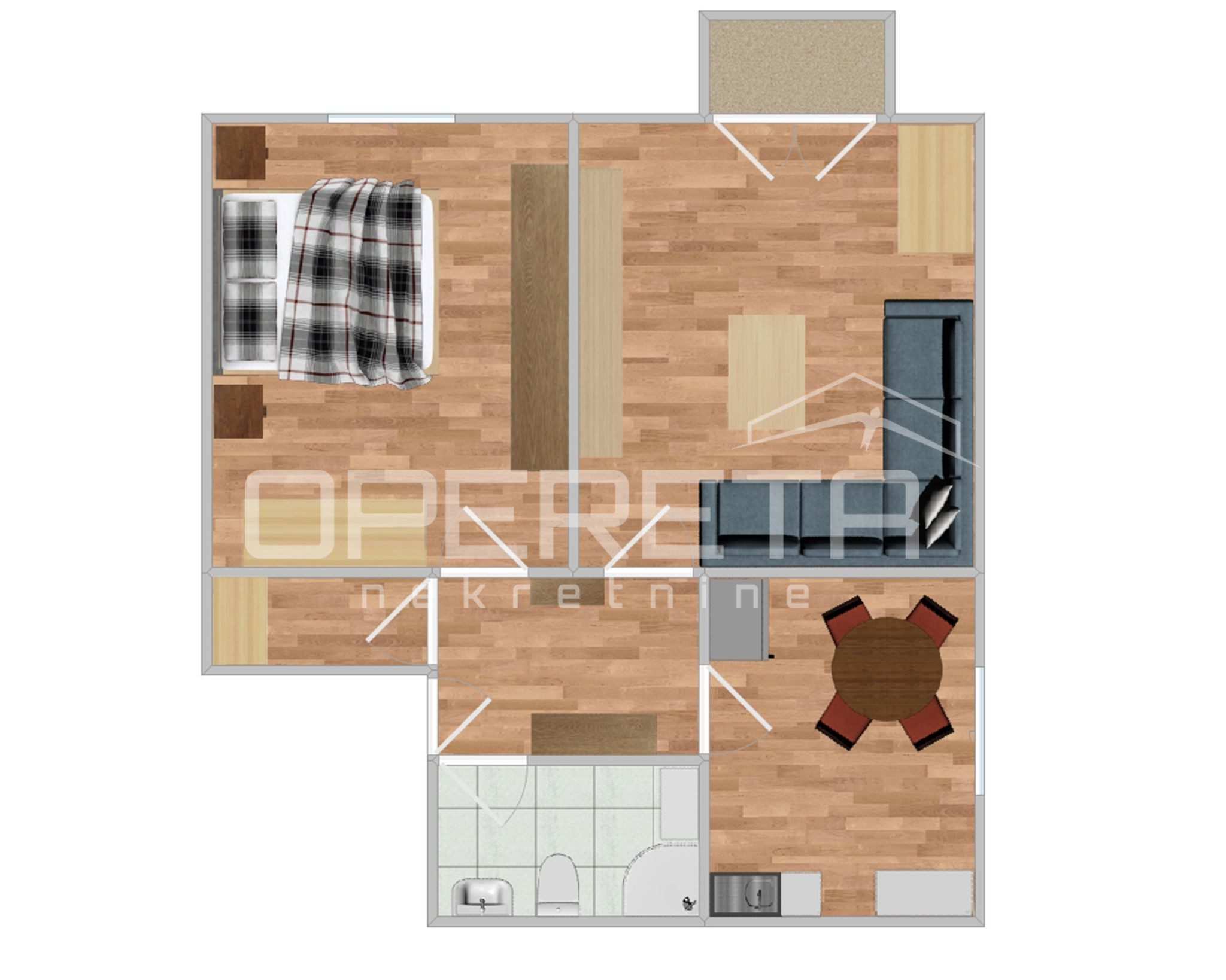 Stan na odličnoj lokacijij u blizini svih potrebnih sadržaja za miran i ugodan život (trgovine,javni prijevoz,parkovi).