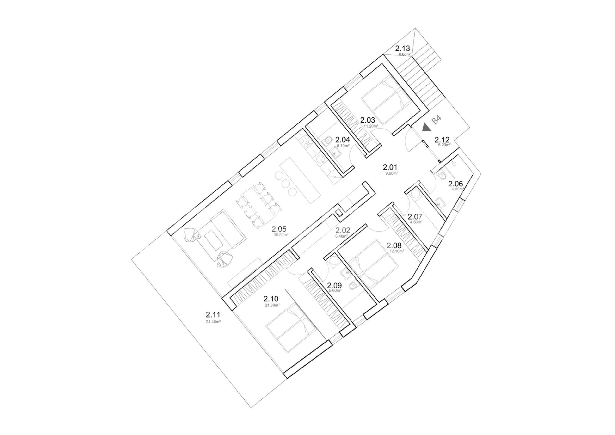 Penthouse odiše suvremenim luksuzom i savršeno organiziranim rasporedom. Sastoji se od tri udobne spavaće sobe, svaka s vlastitim modernim kupaonicama i WC-om, što omogućava maksimalnu privatnost i funkcionalnost za sve članove obitelji ili goste. Glavna spavaća soba, uz vrhunsku udobnost, ima izravan izlaz na terasu – idealno mjesto za jutarnje opuštanje uz pogled na horizont i šum valova.