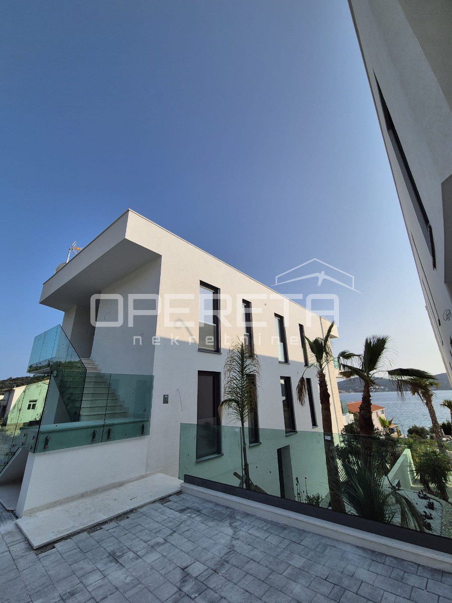 Na drugome katu moderne i luksuzne stambene zgrade nalazi se elegantan stan površine 58,6 m², kojem dodatnu vrijednost daje terasa od 11,6 m² s prekrasnim pogledom na more i obližnju plažu. Ova nekretnina savršen je spoj suvremenog dizajna, funkcionalnog rasporeda i mediteranske atmosfere, idealna za udoban život, odmor ili pametnu investiciju.