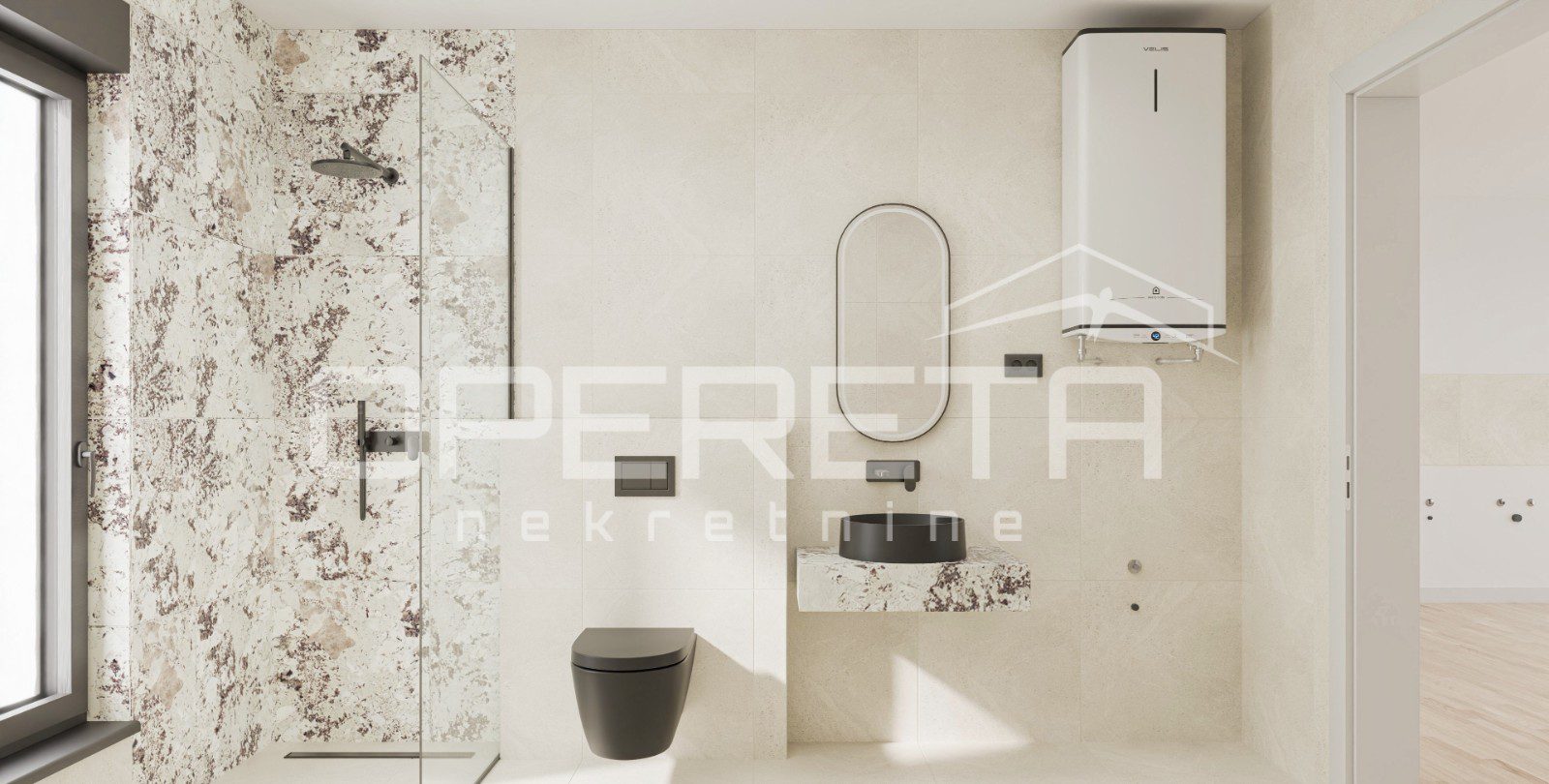 Projekt se izvodi uz korištenje pažljivo odabranih, kvalitetnih materijala i pouzdanih brendova. Ugrađuje se aluminijska vanjska stolarija Schüco, dok je fasada izvedena s toplinskom izolacijom od vune. Grijanje i hlađenje osigurano je DAIKIN klimatizacijskim uređajima, a u kupaonicama je predviđeno podno grijanje. U ovoj fazi izgradnje, prema želji kupca, moguće je uvesti podno grijanje u cijelom stanu. Podovi su obloženi hrastovim parketom i keramikom više klase, a kupaonska oprema uključuje sanitarije provjerenih proizvođača Hans Grohe i Geberit.