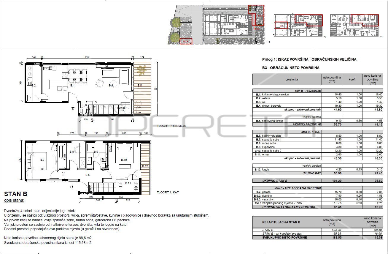 Sveukupna obračunska površina stana iznosi 115.58 m2.