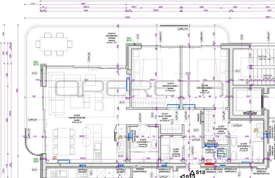 Stan S12 ima stambenu površinu od 105,40 m² i sastoji se od:
