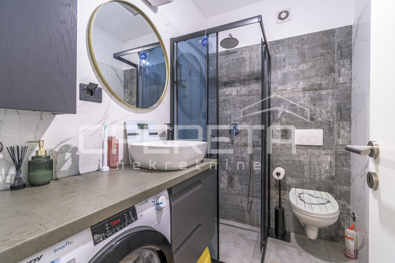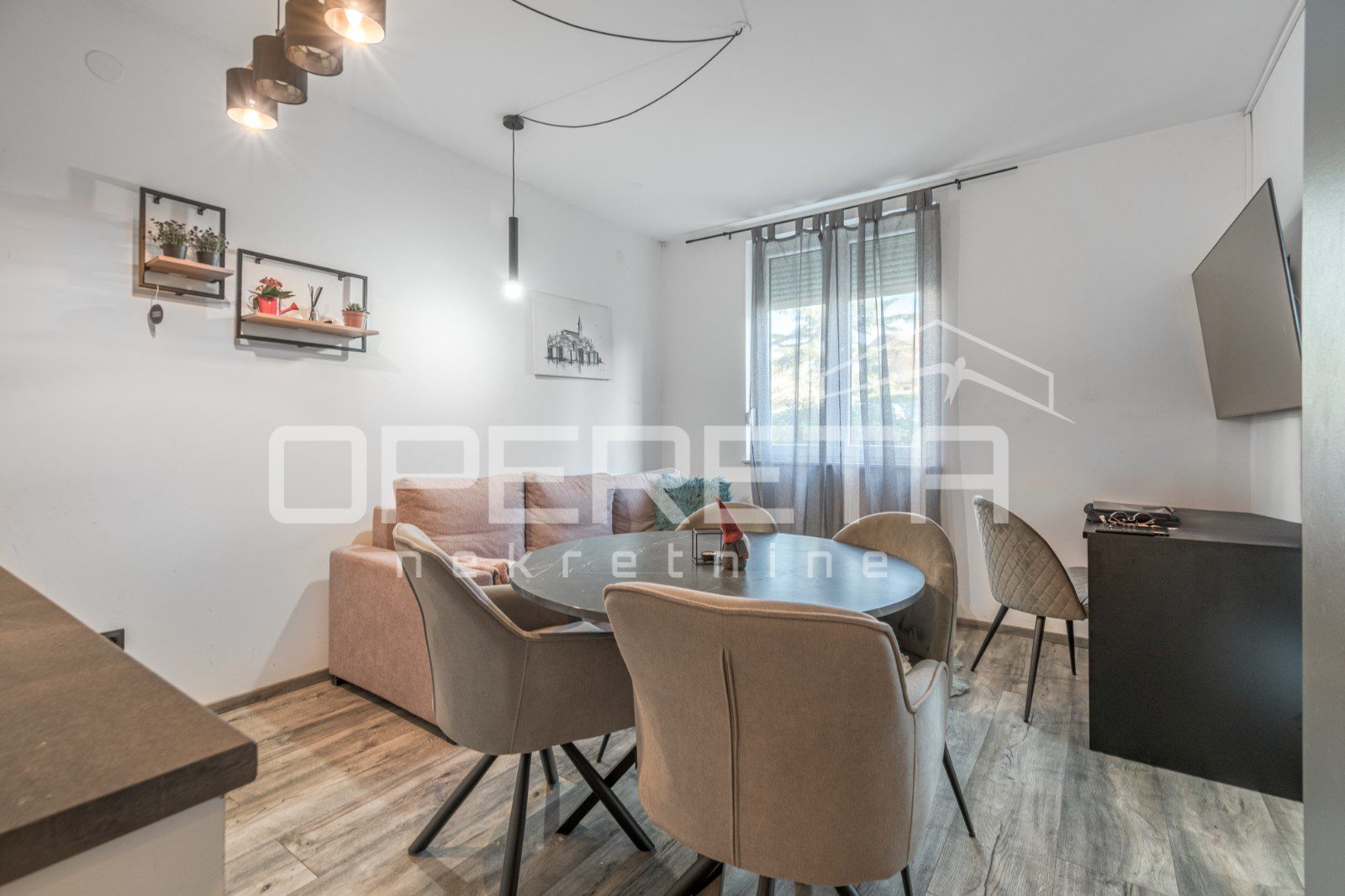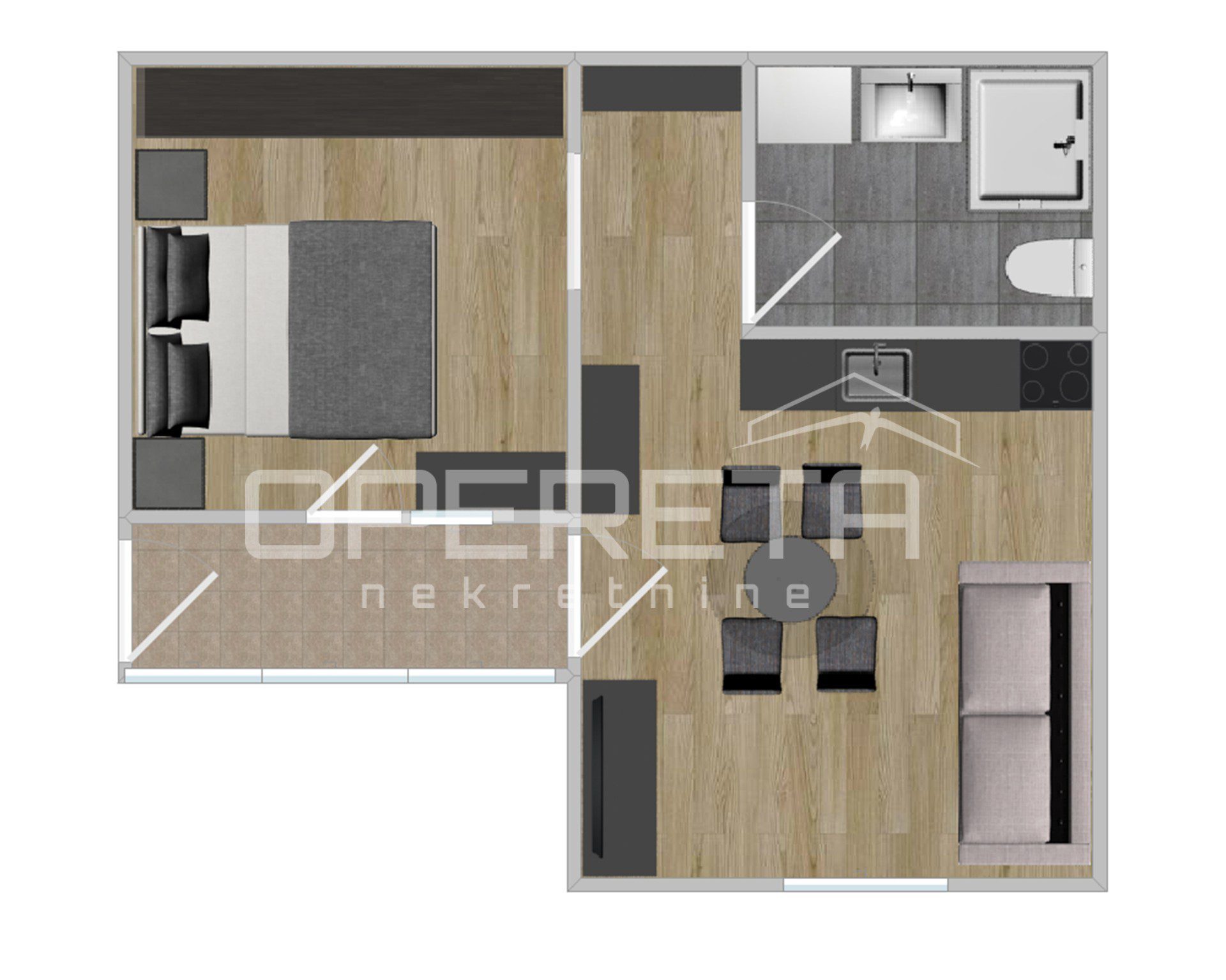 Sastoji se od kuhinje s blagovaonicom i dnevnim boravkom, hodnika, spavaće sobe i kupaonice. Stan je kompletno adaptiran i u potpunosti namješten te se kao takav prodaje.