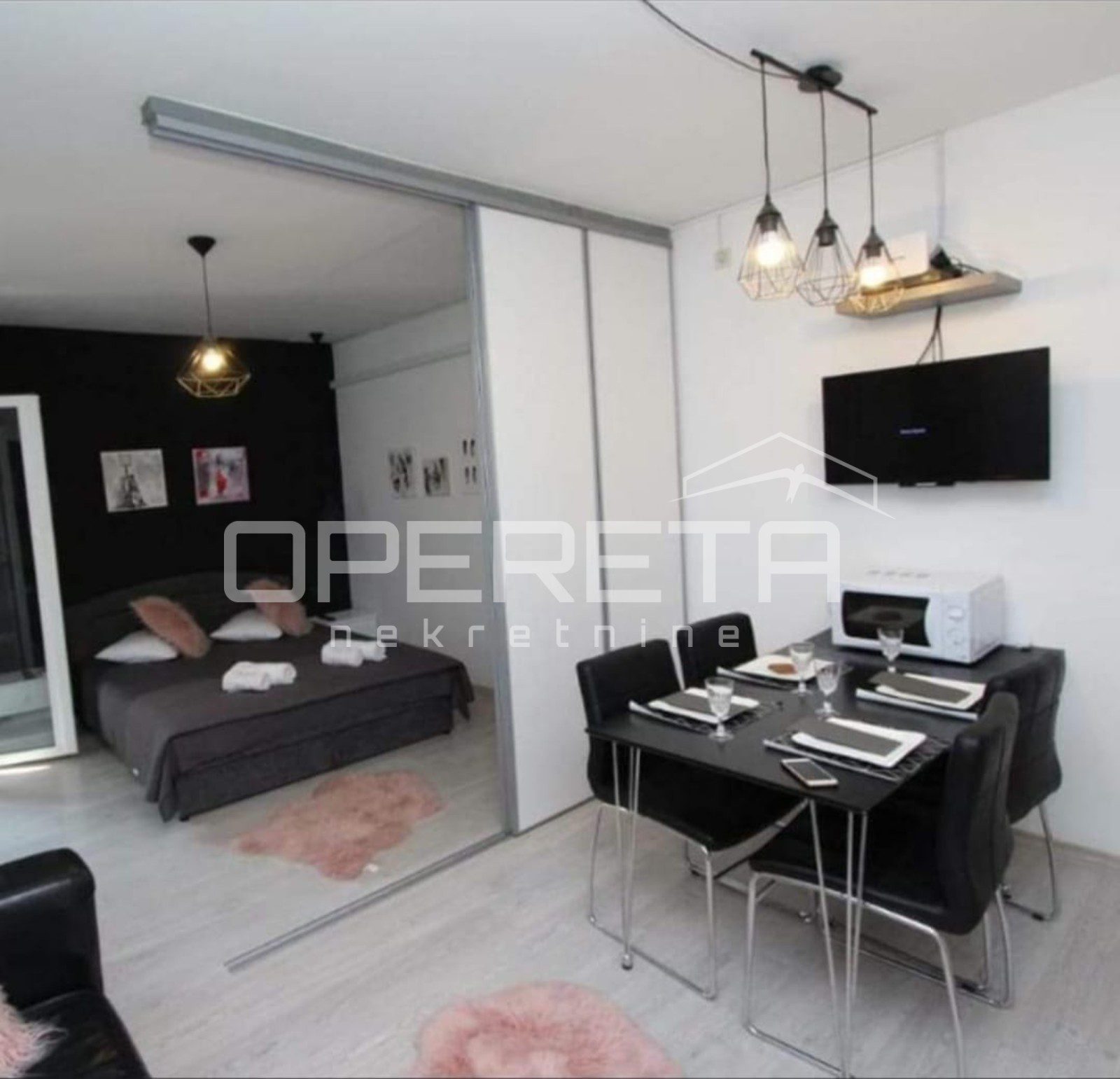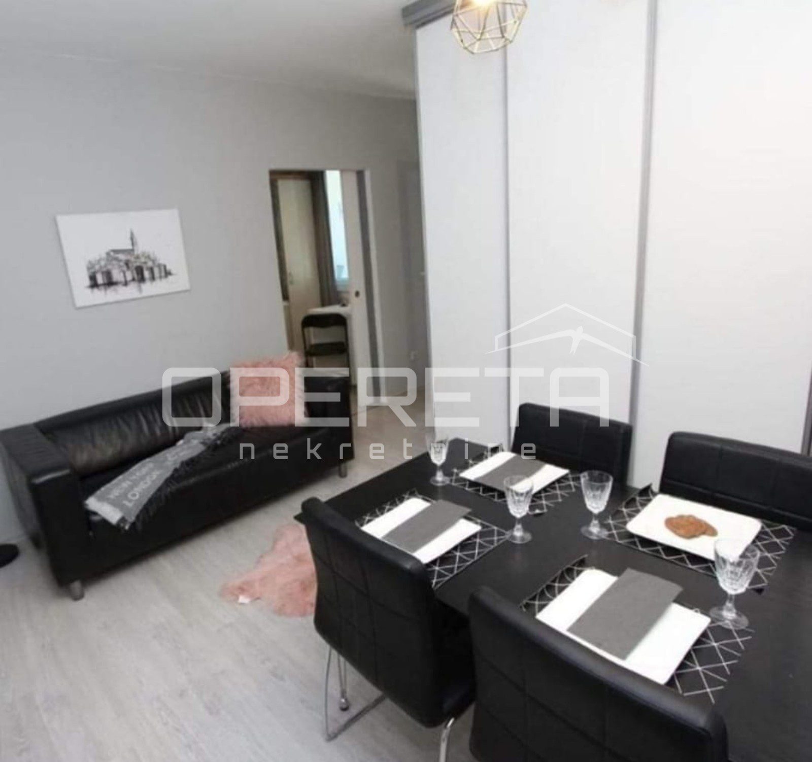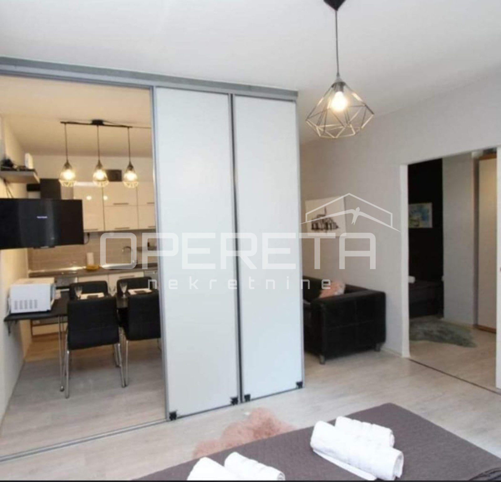Sastoji se od hodnika, dnevnog boravka s kuhinjom i blagovaonicom, spavaće sobe, kupaonice i balkona. Stan je kompletno adaptiran i u potpunosti namješten te se kao takav prodaje.