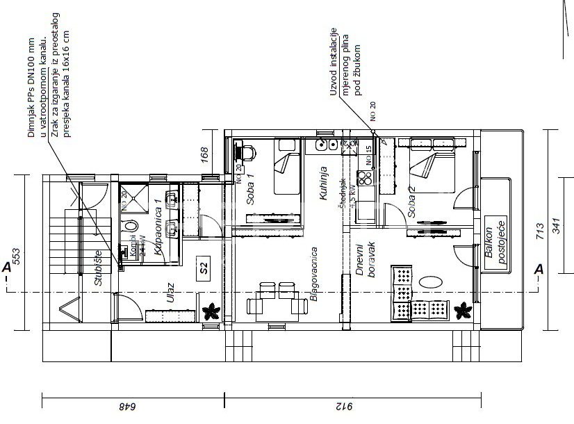 Grijanje je centralno plinsko + podno grijanje na struju u kupaonama. Toplinska izolacija 10 cm (stirodur na donjoj etaži, stiropor na gornjoj). Na krovu izolacija 20 cm stirodur i priprema za solarne panele. LVT podovi, staklena ograda na terasi i keramika na izbor kupca.