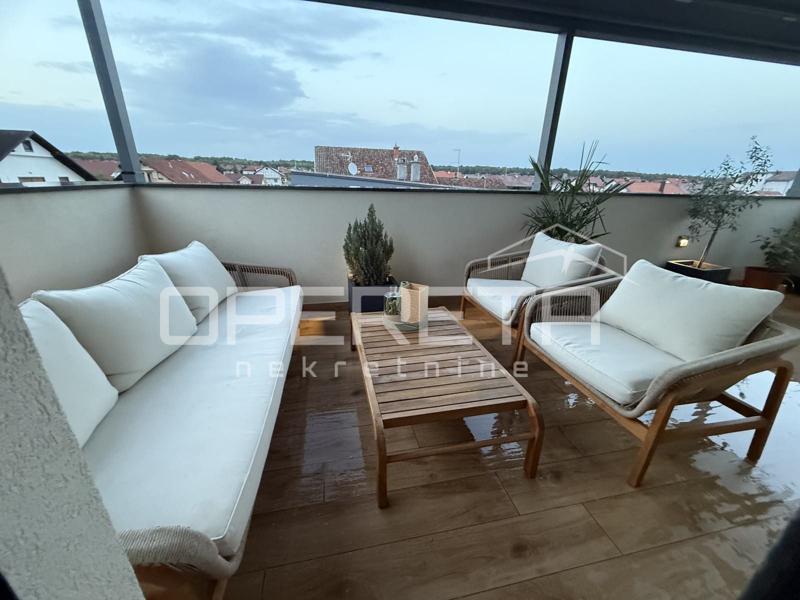 PRODAJA, STAN, Sesvetski Kraljevec, penthouse 4sobni. Prodaje se prekrasno i luksuzno uređen stan u blizini svih sadržaja za život. Stan se sastoji od hodnika, dnevnog boravka s blagovaonicom i kuhinjom, tri spavaće sobe, kupaonice i wc-a, površine 91,63 m2, zatvorenog prostora i dvije terase u sklopu stana, površine 19,34 m2 svaka s pripadajućim