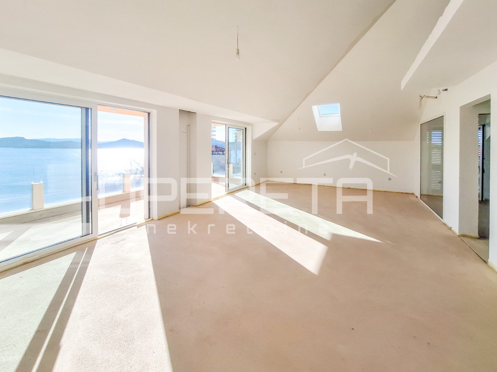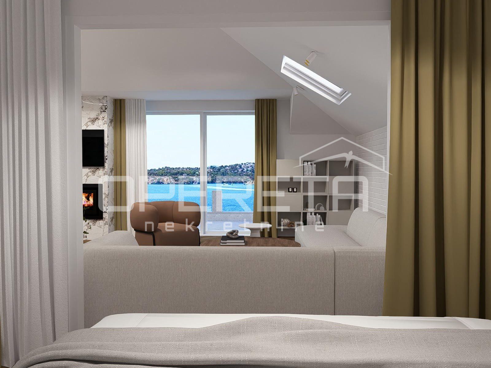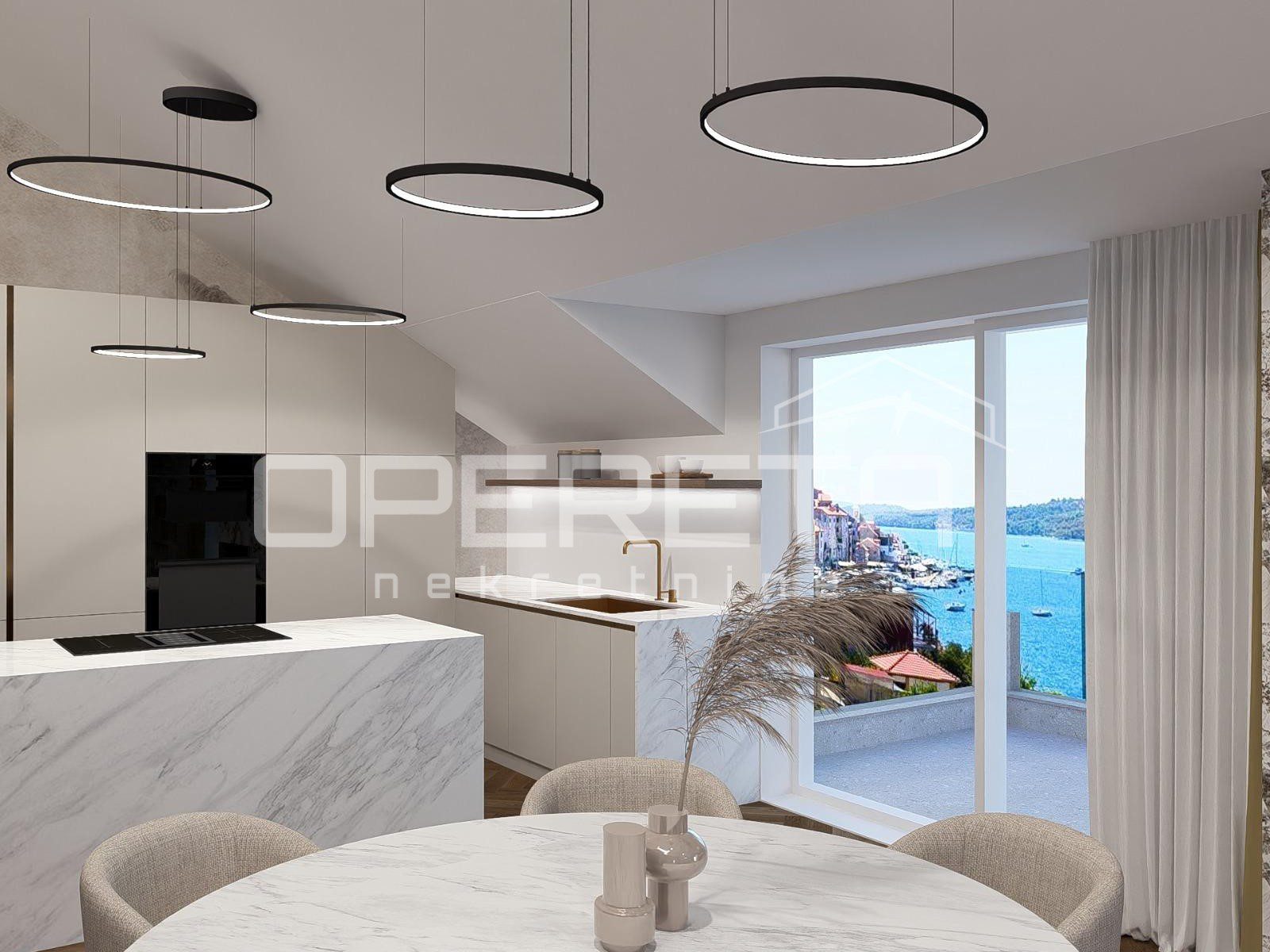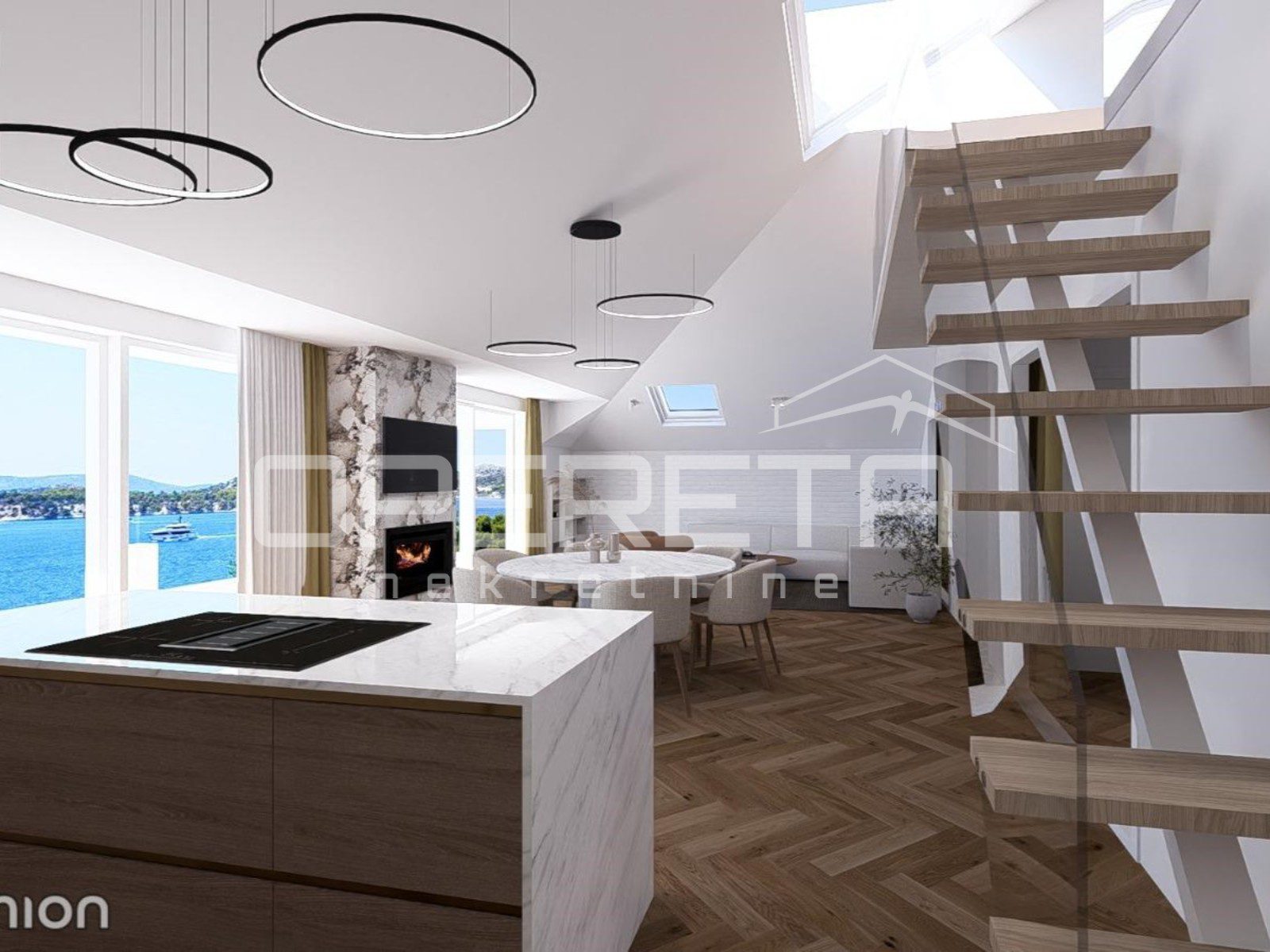 Prostrani dnevni boravak spojen s blagovaonicom i kuhinjom čini središte doma, uz terasu površine 20m2 s koje se pruža pogled na more, grad i slikoviti kanal sv. Ante.