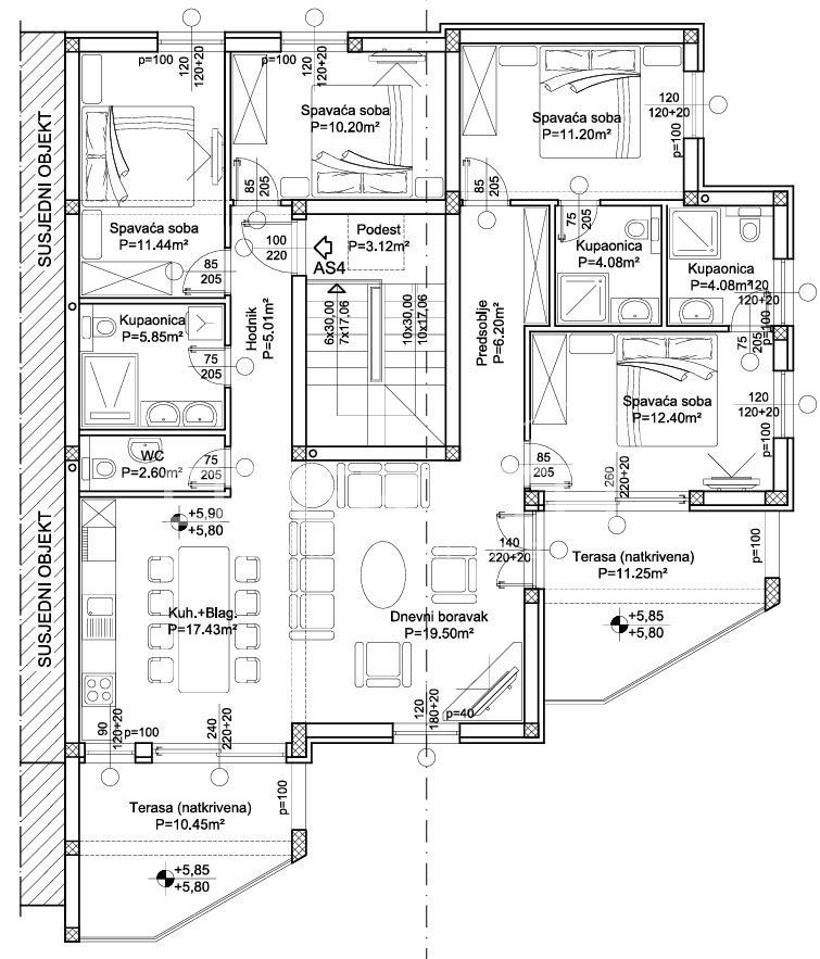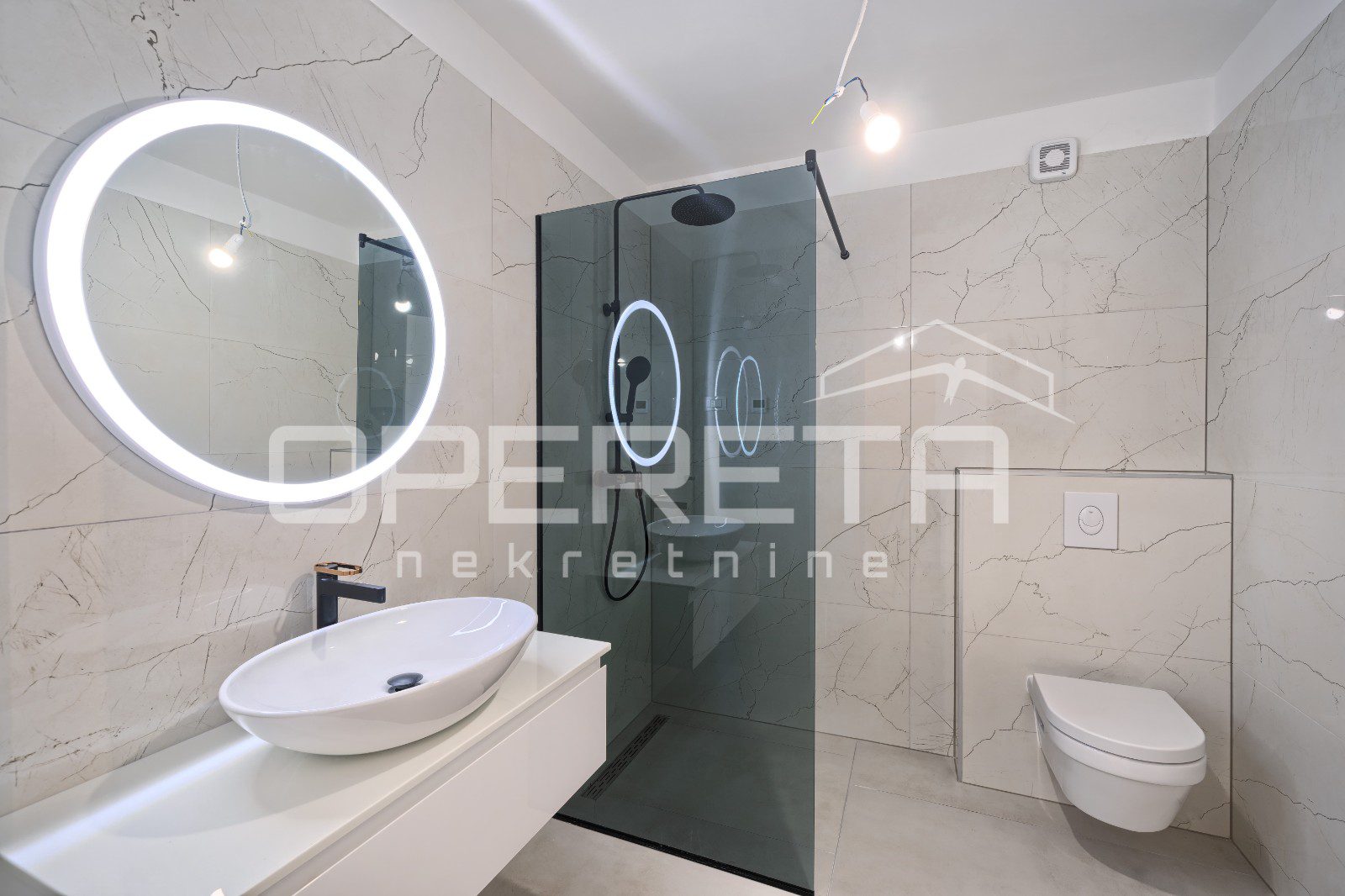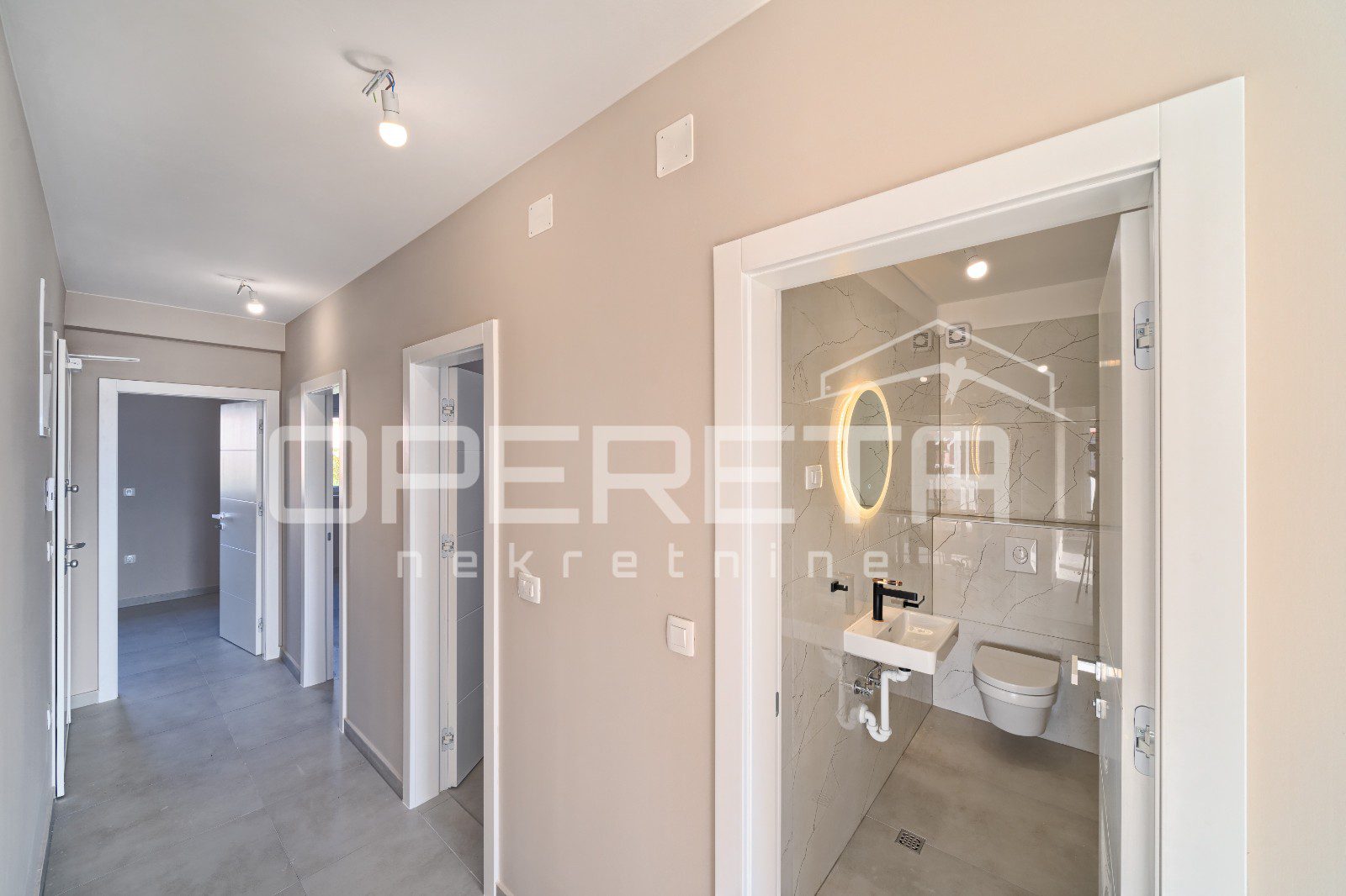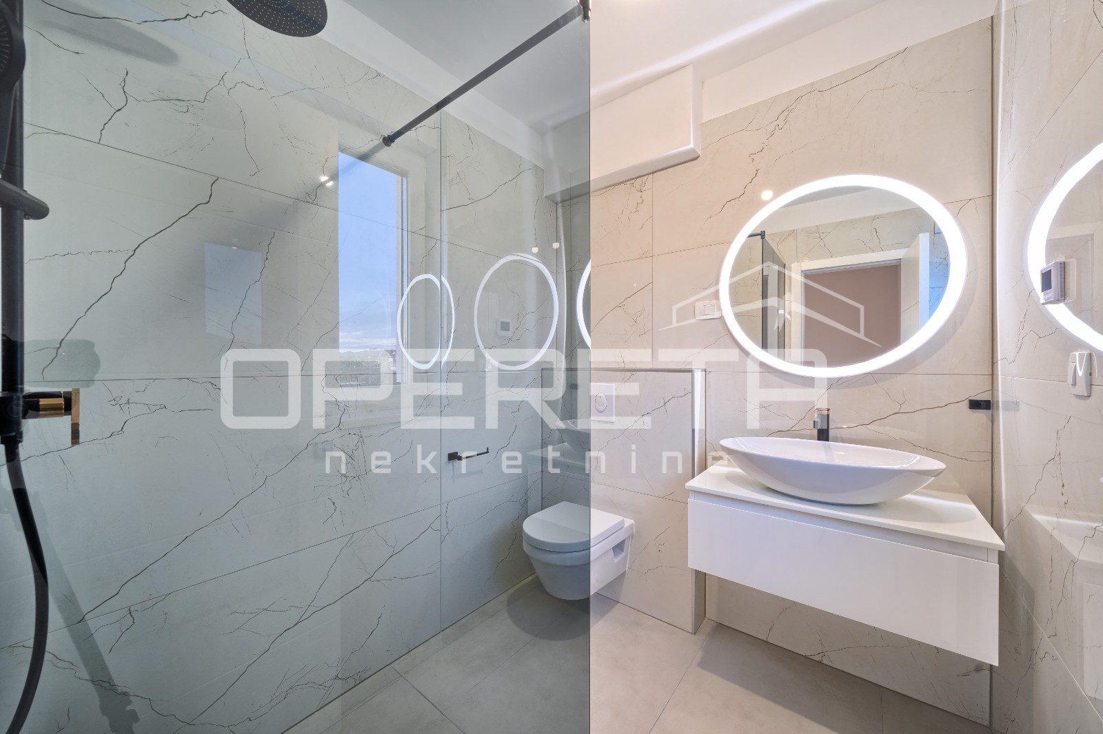 Stan se nalazi na drugom katu manje stambene zgrade, pažljivo projektirane kako bi svaki detalj služio udobnosti i kvaliteti stanovanja. Otvoreni dnevni prostor ispunjen svjetlom, suvremena kuhinja, te dvije prostrane terase pružaju savršen balans između privatnosti i prostora za druženje. S četiri spavaće sobe, tri moderno uređene kupaonice i jednog odvojenog toaleta, ovo je dom koji nudi više od klasičnog apartmanskog smještaja.