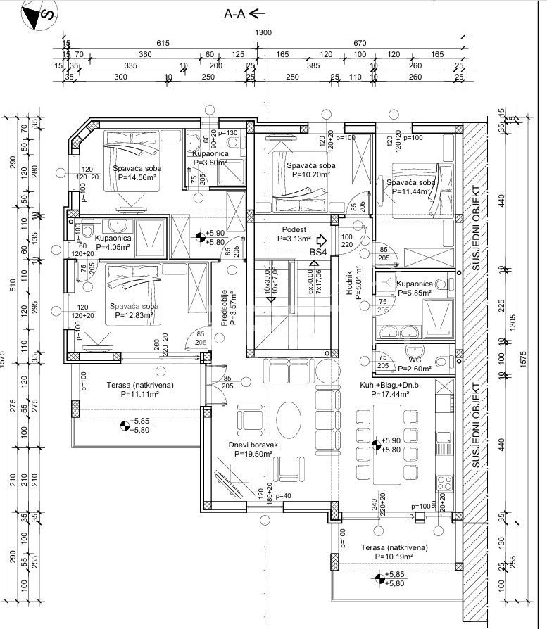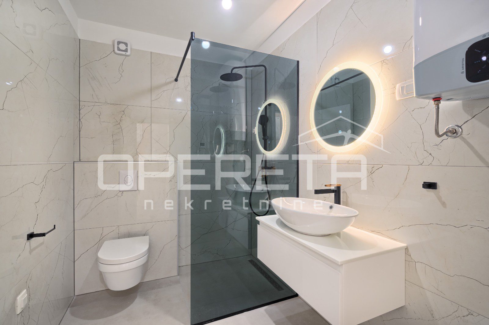 Stan se nalazi na drugom katu manje stambene zgrade, pažljivo projektirane kako bi svaki detalj služio udobnosti i kvaliteti stanovanja. Otvoreni dnevni prostor ispunjen svjetlom, suvremena kuhinja, te dvije prostrane terase pružaju savršen balans između privatnosti i prostora za druženje. S četiri spavaće sobe, tri moderno uređene kupaonice i jednog odvojenog toaleta, ovo je dom koji nudi više od klasičnog apartmanskog smještaja.