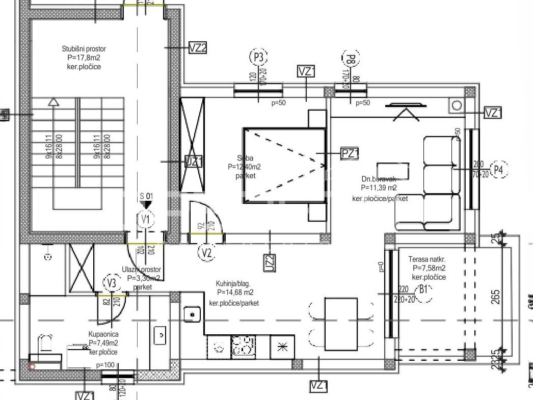 Stan će biti opremljen kvalitetnom keramikom, električnim podizačima roleta, podnim grijanjem u kupaonicama te s dva klima uređaja, što osigurava maksimalnu udobnost tijekom cijele godine.