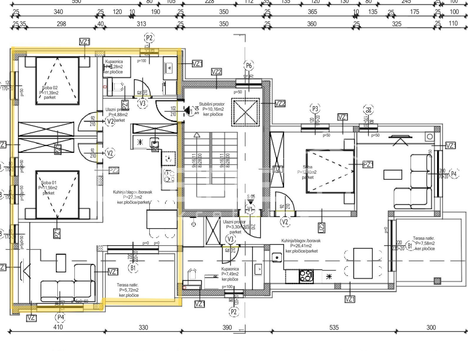 Stan će biti opremljen kvalitetnom keramikom, električnim podizačima roleta, podnim grijanjem u kupaonicama te s dva klima uređaja, što osigurava maksimalnu udobnost tijekom cijele godine.