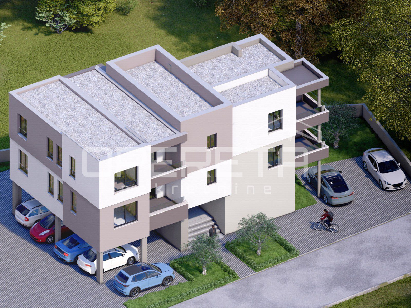 Na čestici površine 624 m² u izgradnji je moderna stambena zgrada s ukupno pet stanova i 11 parkirnih mjesta. Zgrada se sastoji od podruma, prizemlja i dva kata.