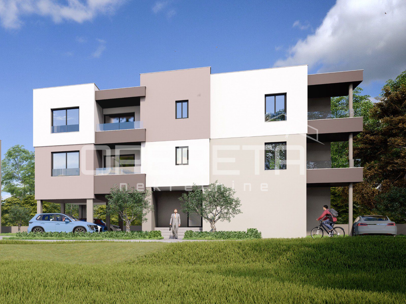 Na čestici površine 624 m² u izgradnji je moderna stambena zgrada s ukupno pet stanova i 11 parkirnih mjesta. Zgrada se sastoji od podruma, prizemlja i dva kata.