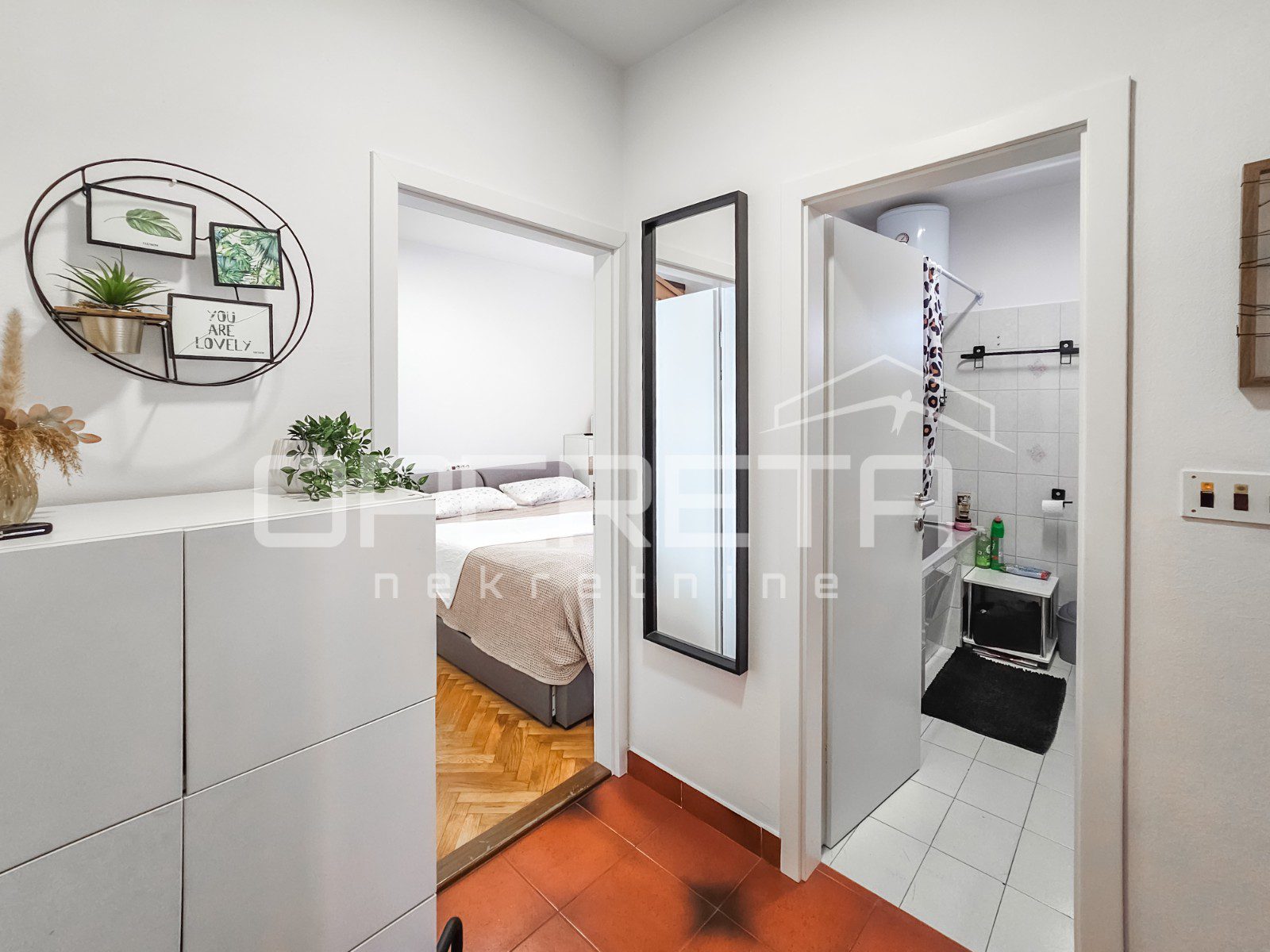 Dodatni suterenski prostor površine 20,5 m² koji u naravi predstavlja garsonjeru, također pripada stanu. Ovaj prostor ima velik potencijal, jer se uz adaptaciju može pretvoriti u samostalnu stambenu jedinicu i etažirati. Takva mogućnost otvara priliku za dodatni prihod kroz najam ili za uređenje ugodnog prostora za goste ili radni kutak.