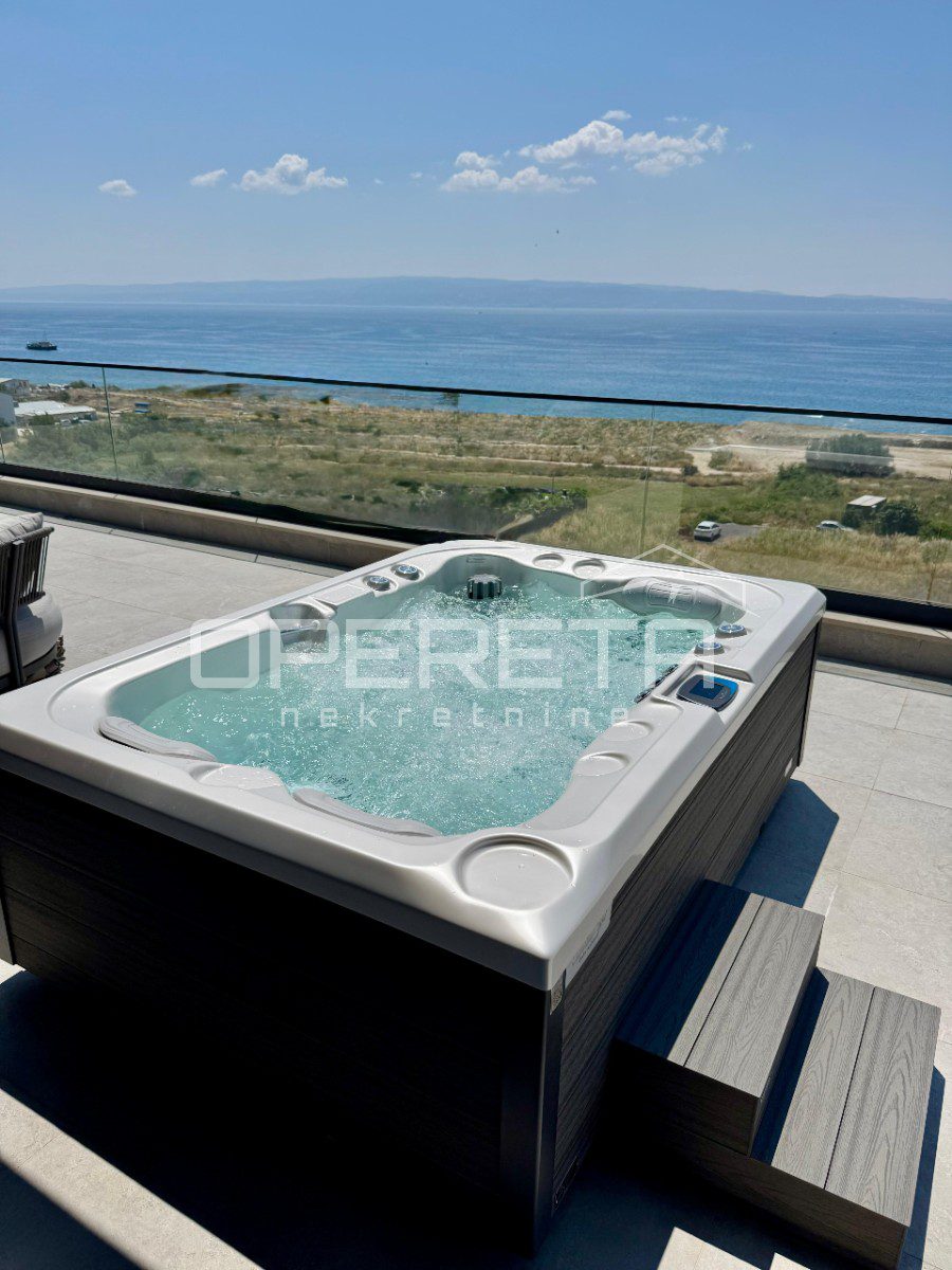 Posebnu vrijednost ovoj nekretnini daje impresivna terasa površine dodatnih 70 m². To je prostor stvoren za opuštanje i uživanje na otvorenom, s jacuzzijem i panoramskim pogledom na Jadransko more koji pretvara svako jutro i večer u mali privatni odmor.