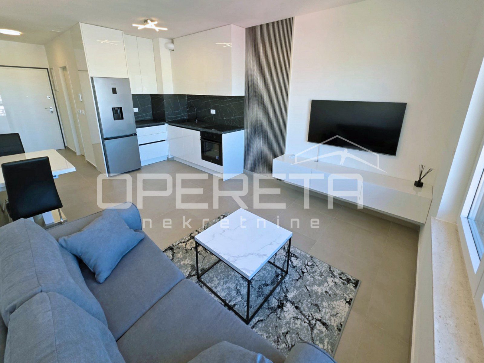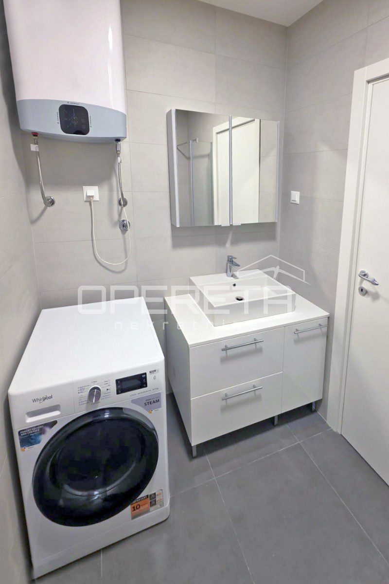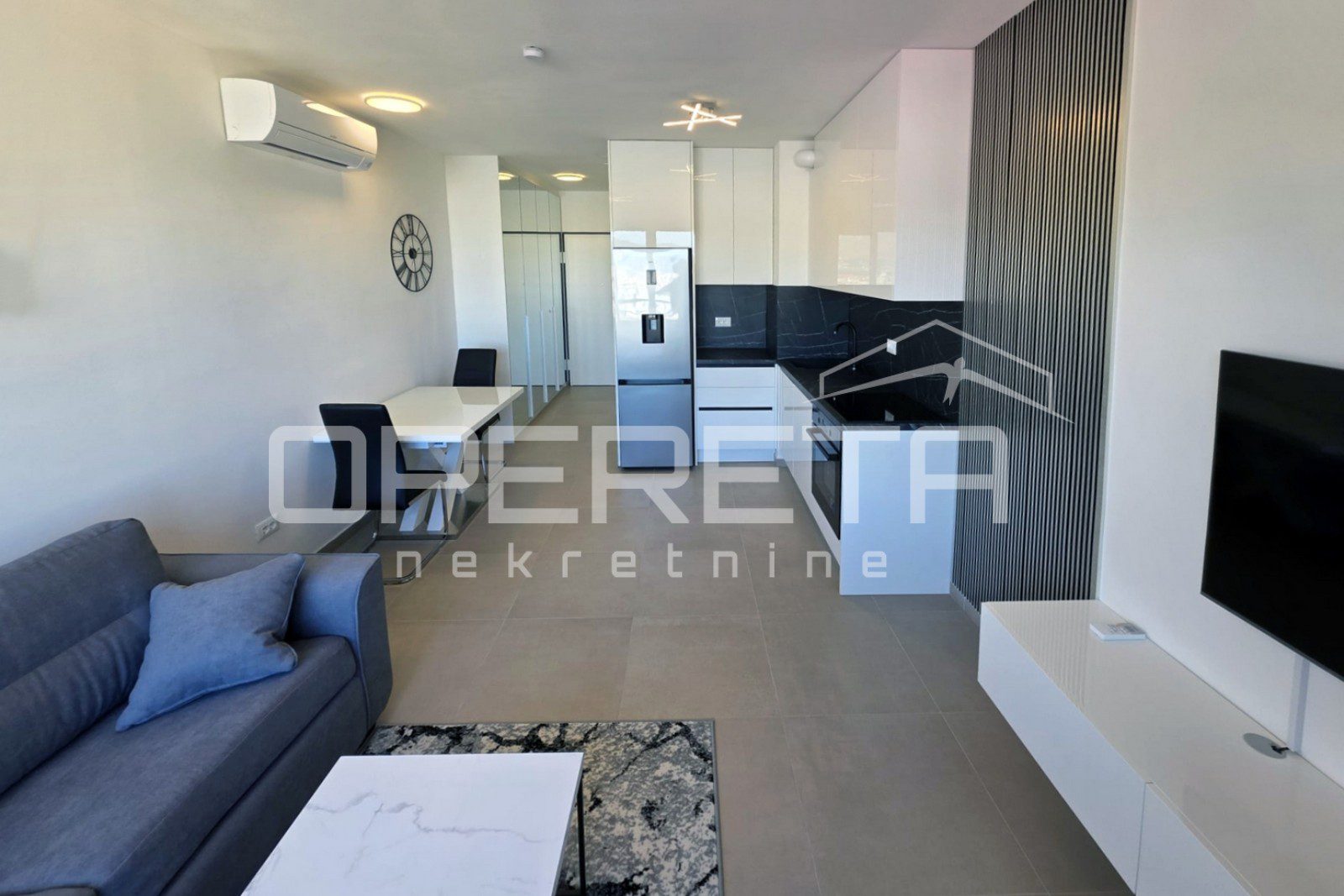 Garsonijera je potpuno nova, nikada useljavana, te je opremljena s posebnom pažnjom na udobnost i funkcionalnost. Kuhinja je suvremenog dizajna, potpuno opremljena svim potrebnim aparatima, uključujući perilicu posuđa, dok moderno uređena kupaonica ima perilicu i sušilicu rublja. U stanu se nalazi i veliki ugradbeni ormar izrađen po mjeri, koji dodatno doprinosi osjećaju prostranosti i reda. Električne rolete, klimatizacija i protuprovalna vrata osiguravaju visoku razinu komfora i sigurnosti.