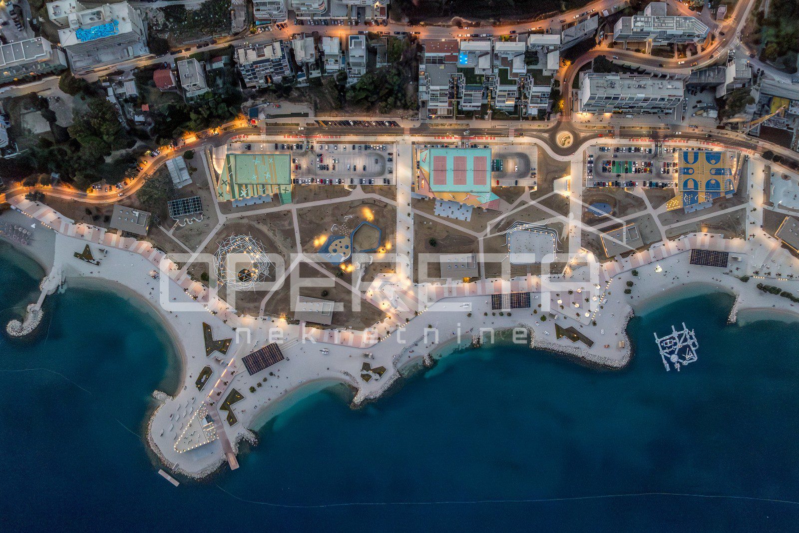 Nekretnina se nalazi na petom katu stambene zgrade s liftom te se prostire na približno 55 m² stambene površine, uz pripadajuću lođu površine 11 m². Stan se sastoji od prostranog dnevnog boravka povezanog s moderno opremljenom kuhinjom i blagovaonicom, spavaće sobe s vlastitim kupatilom, dodatnog kupatila, hodnika, ulaznog prostora i ostave. Iz dnevnog boravka i spavaće sobe izlazi se na lođu s garniturom za sjedenje, s koje se pruža predivan pogled na more i okolne otoke, idealan za opuštanje i uživanje u mediteranskom ambijentu.