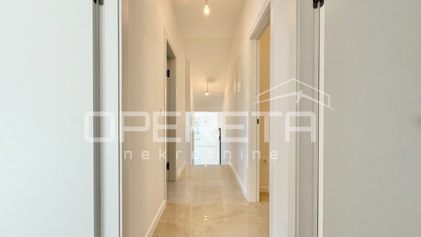 Stan se nalazi u prizemlju zgrade. Sastoji se od kuhinje, dnevnog boravka sa blagavaonicom, dvije spavaće sobe, jedne kupaonice, WC-a, spremišta i balkona. Stanu također pripada veliki vrt te dva parking mjesta.