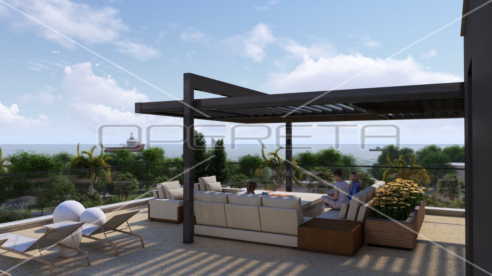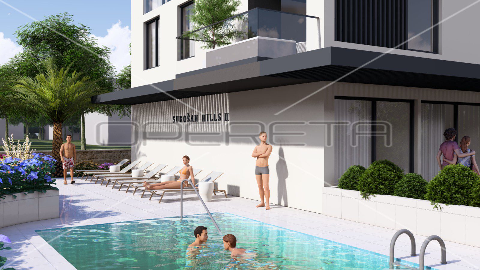 Toalet i vešeraj su također predviđeni. Kuhinja sa blagavaonicom i dnevni boravak otvorenog tipa savšreno se spajaju sa lođom. Penthouse ima izlaz na krovnu terasu gdje je predviđen jacuzzi i prostor za druženje.