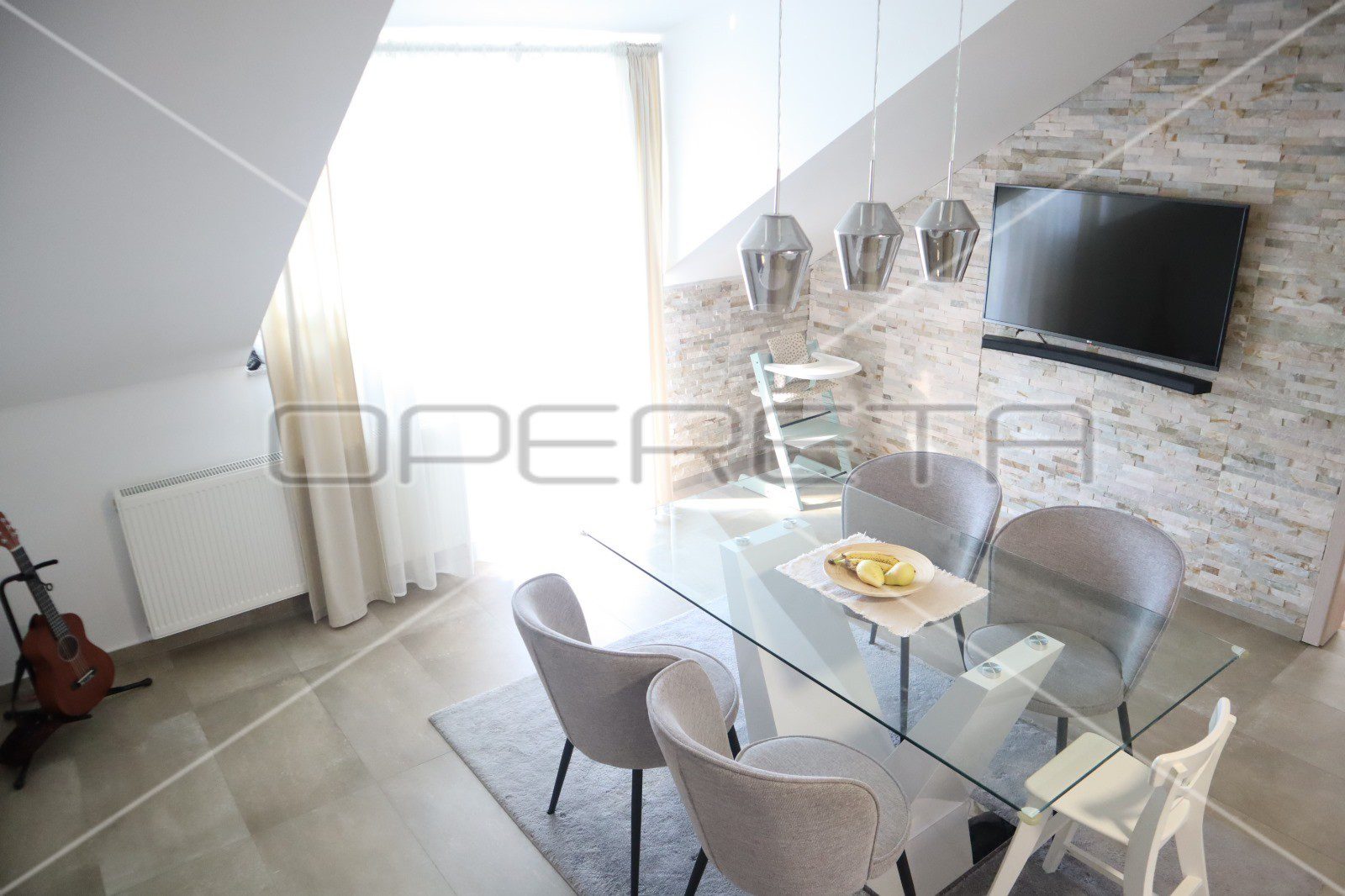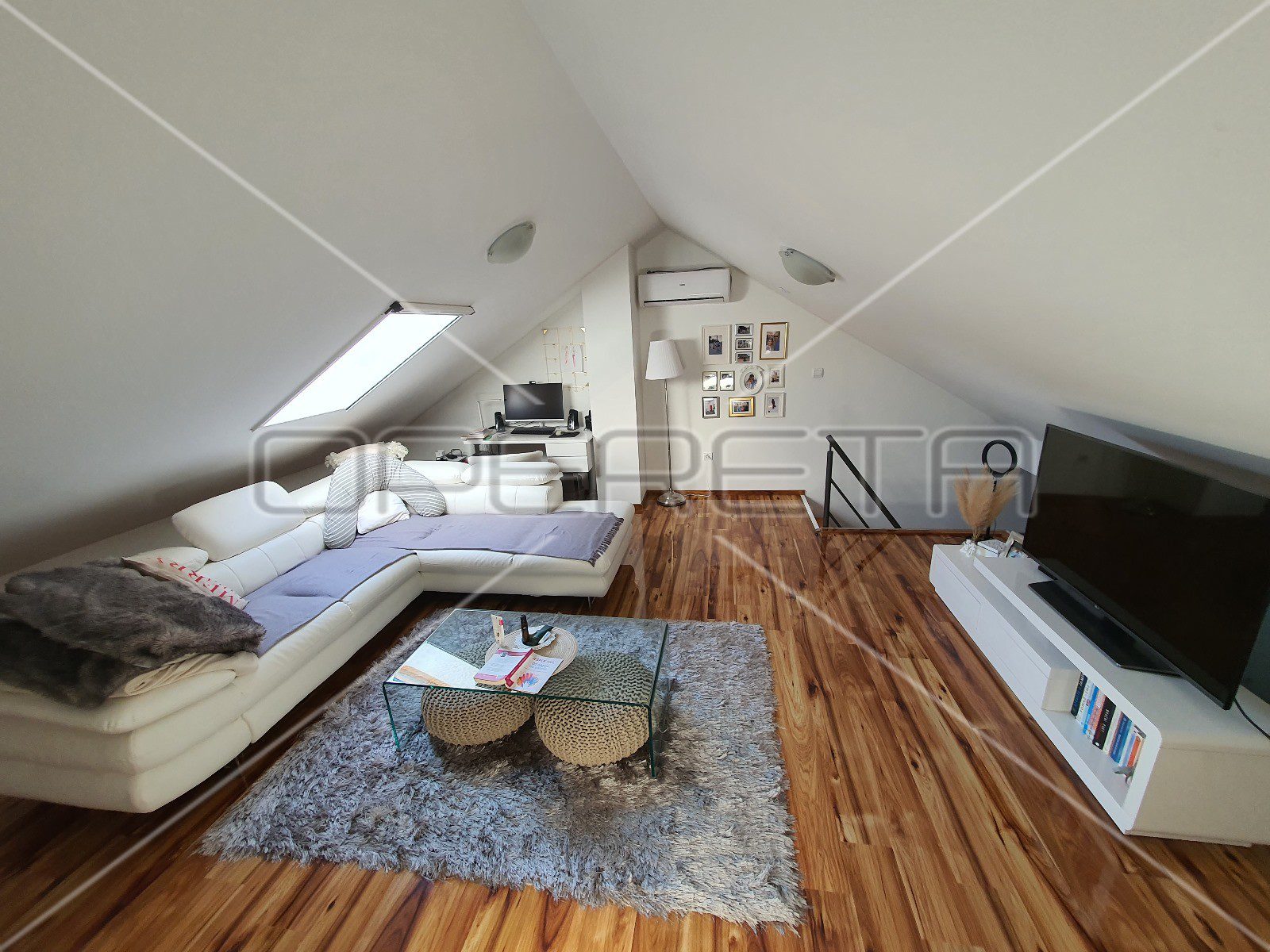 Prodaje se u potpunosti namješten i vrhunski stan na vrlo traženoj lokaciji u blizini samih Toplica Sveti Martin. Stan se nalazi na drugom katu stambeno – poslovne zgrade i površine je 79,66 m2, te je površina galerije (potkrovlje) 27,83 m2. Stan se sastoji od: hodnika, dvije kupaonice, dvije spavaće sobe, garderobe, balkona, dnevnog boravka, blagovaonice i kuhinje te uređene galerije koja nije etažirana, ali je uređena u dnevnu sobu s ugradbenim ormarima.