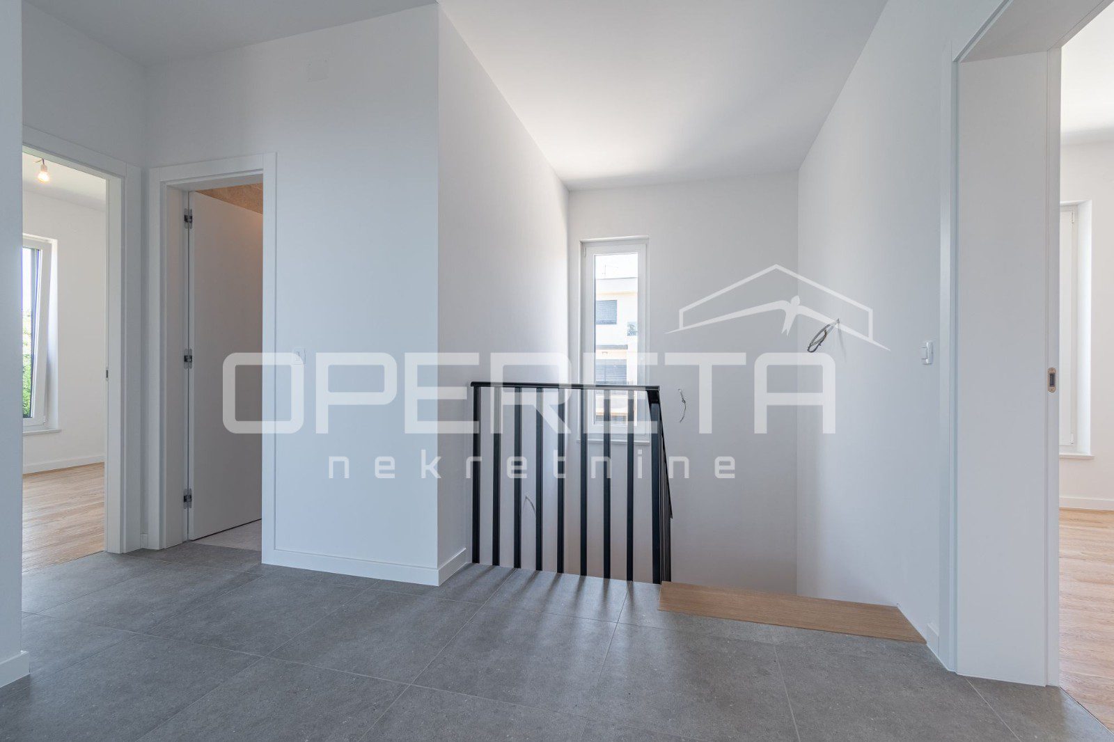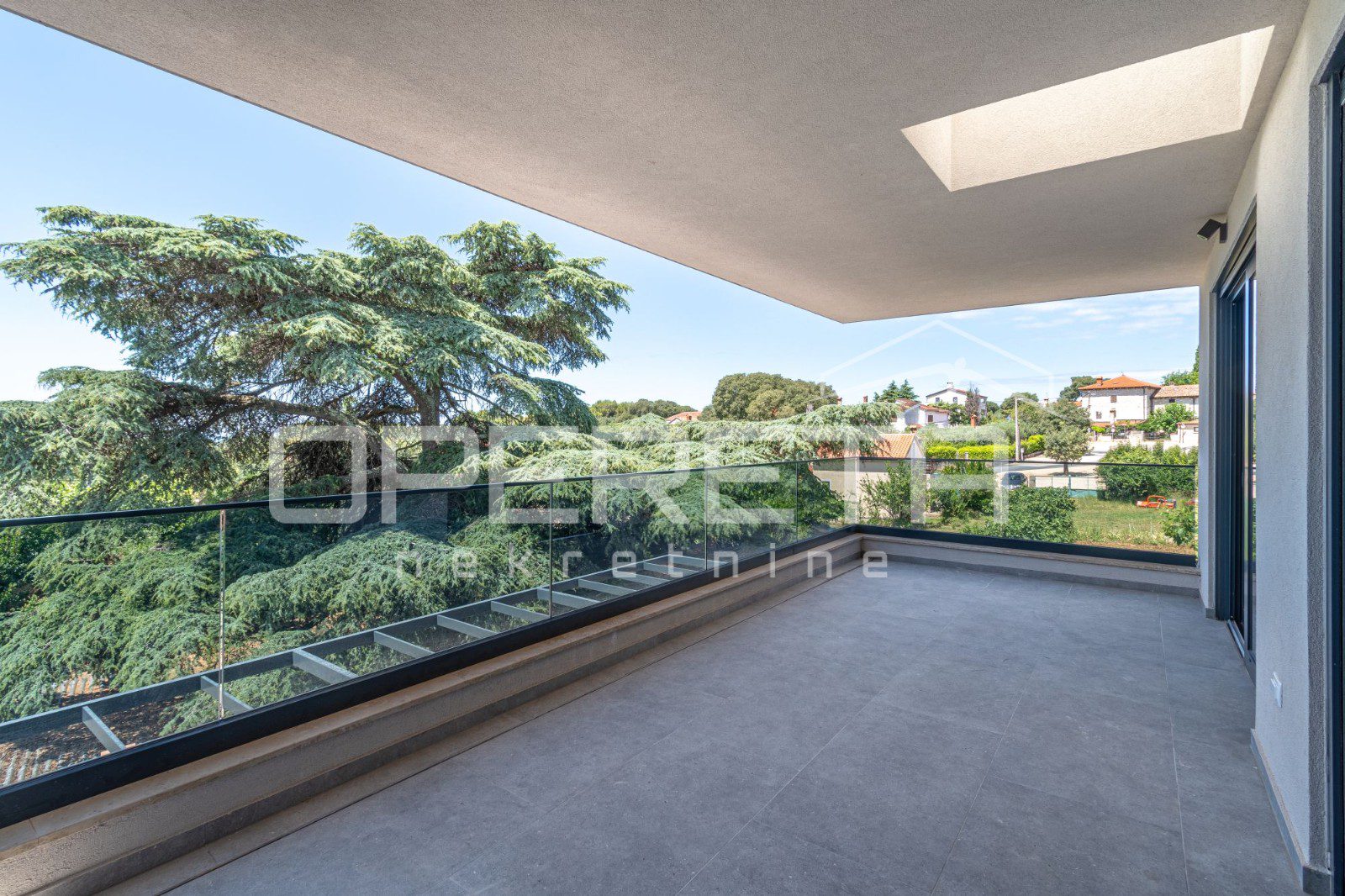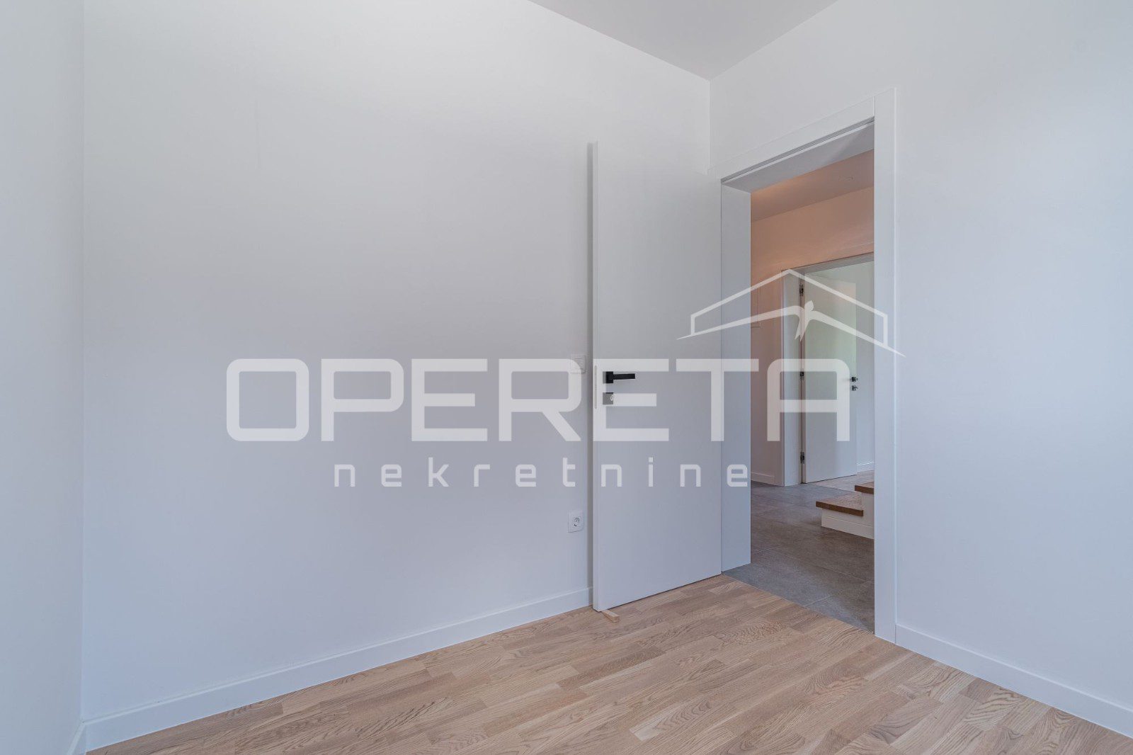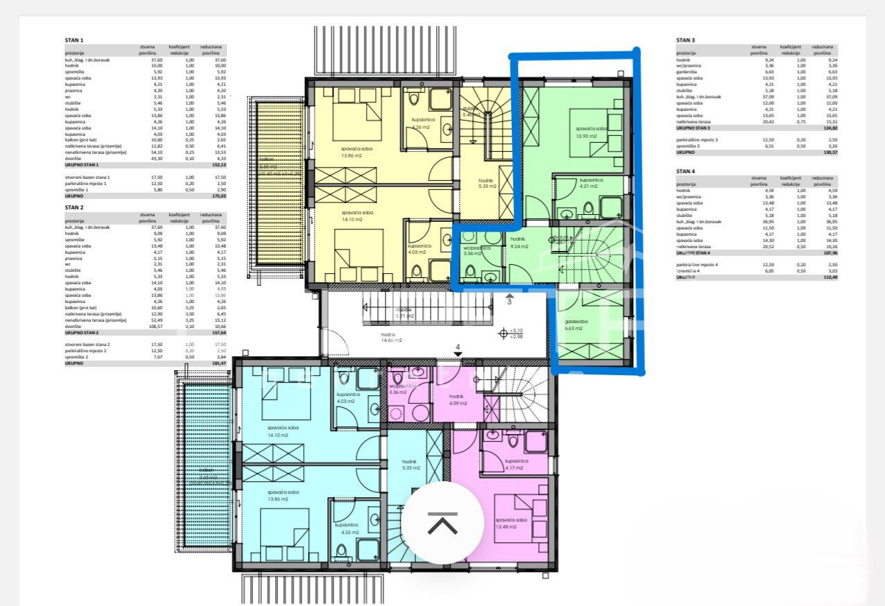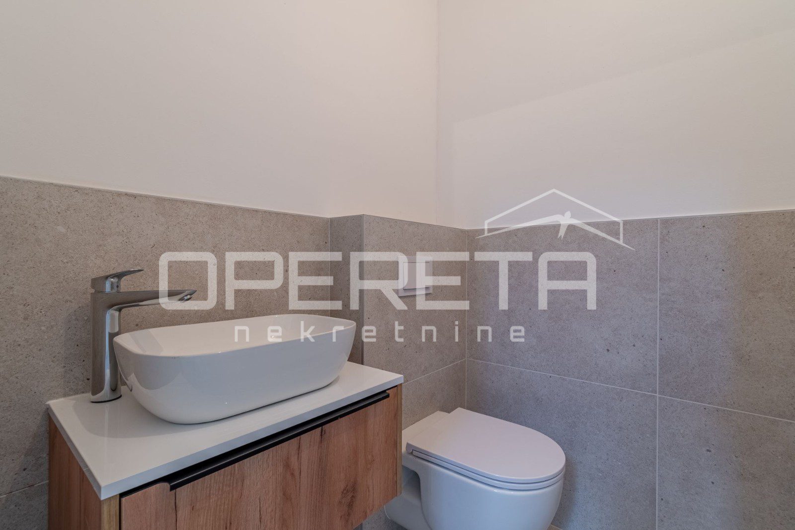 Donja etaža stana sastoji se od elegantnog predsoblja, jedne spavaće sobe s vlastitom kupaonicom, garderobe te praktične praonice s toaletom. Unutarnje stepenište vodi na gornju etažu, gdje dominira prostrani dnevni boravak s kuhinjom i blagovaonicom u otvorenom konceptu. Na istoj etaži nalaze se još dvije spavaće sobe i dvije kupaonice, čime se osigurava maksimalna privatnost za sve stanare. Iz dnevnog dijela izlazi se na natkrivenu terasu površine 15 m² s koje se pruža očaravajući, otvoren pogled na more, idealan za trenutke opuštanja.