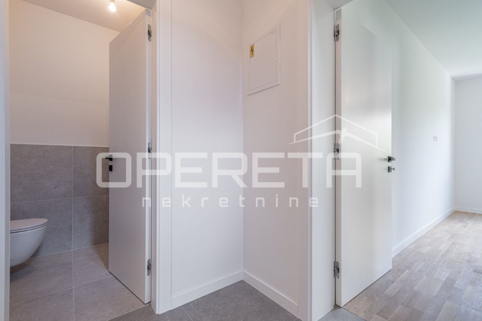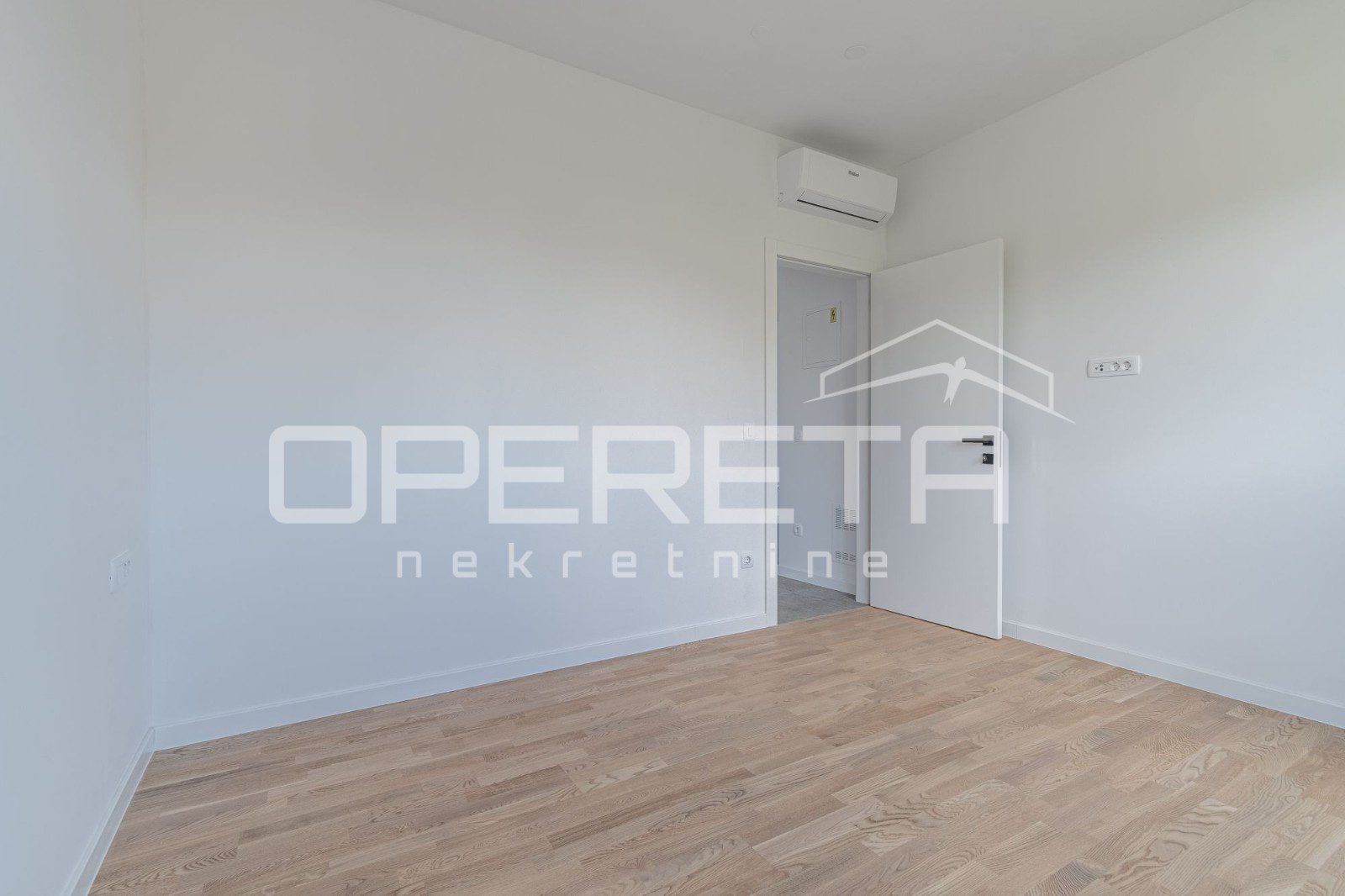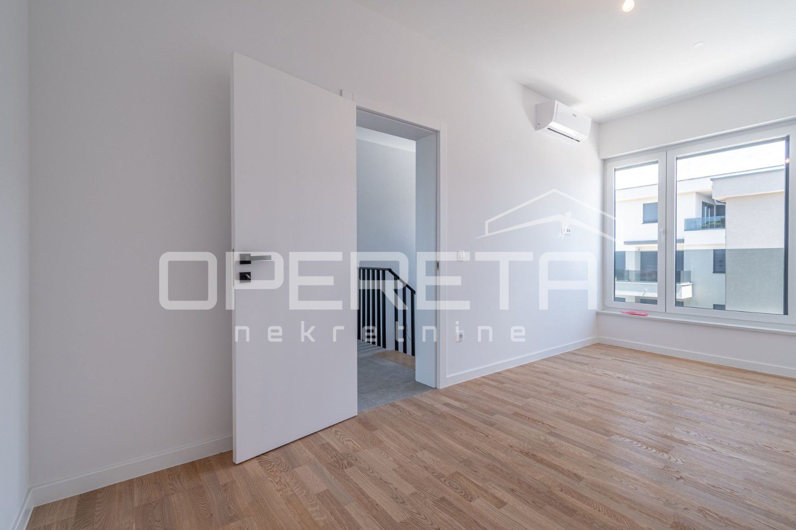 Stan je opremljen najkvalitetnijim materijalima i opremom: u svim kupaonicama i dnevnom boravku postavljeno je podno grijanje na struju, dok su sve prostorije klimatizirane uređajima s inverterom. Vrhunska aluminijska i PVC stolarija opremljena je komarnicima i električnim roletama, a podovi su obloženi kombinacijom prvoklasne keramike i troslojnog hrastovog parketa. Svaka soba raspolaže vlastitim TV priključkom. Uz stan dolazi i osigurano parking mjesto te spremište od 3,26 m².