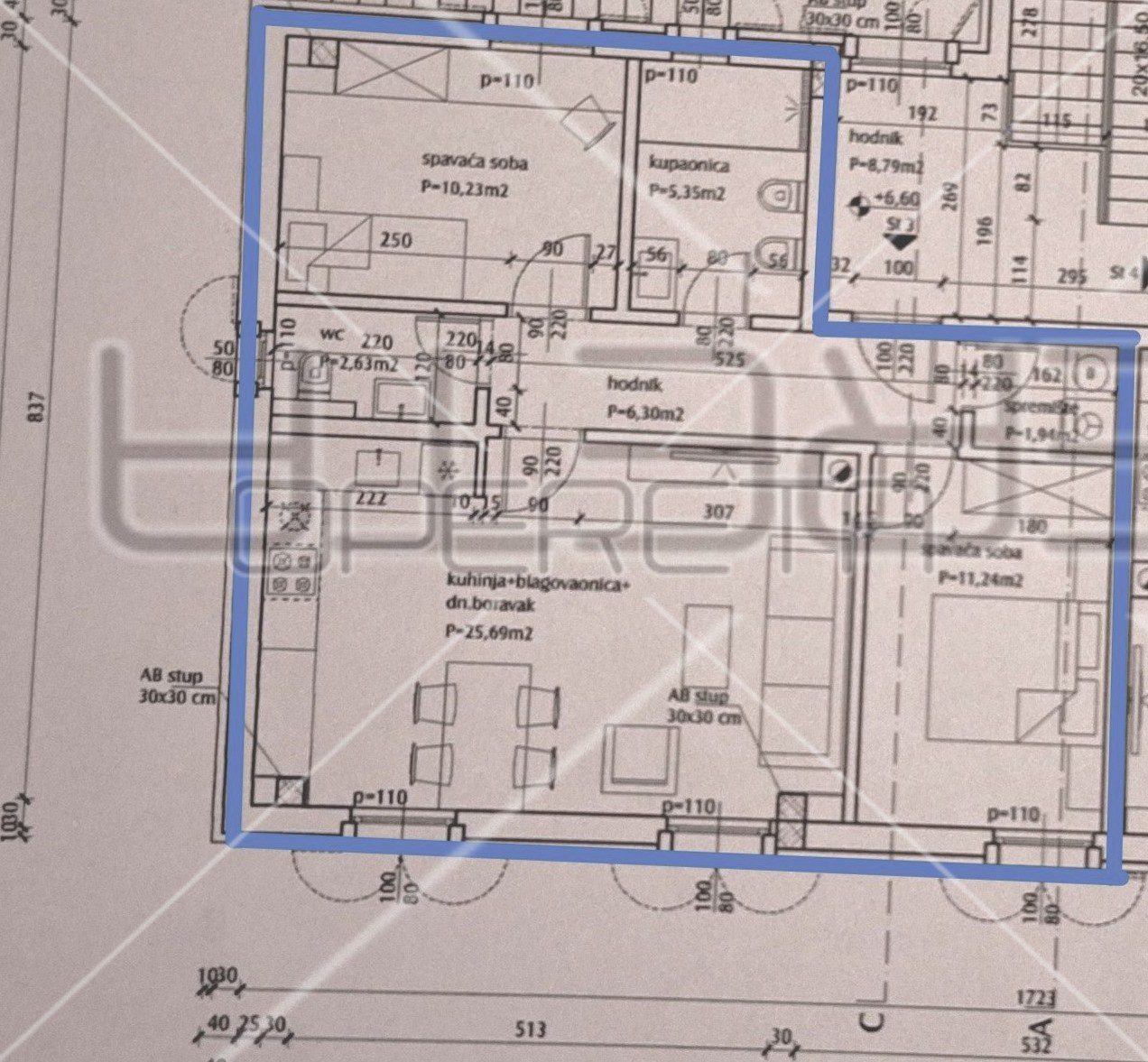 Stan na prvom katu stambene zgrade ukupne stambene površine 57,82 m2.