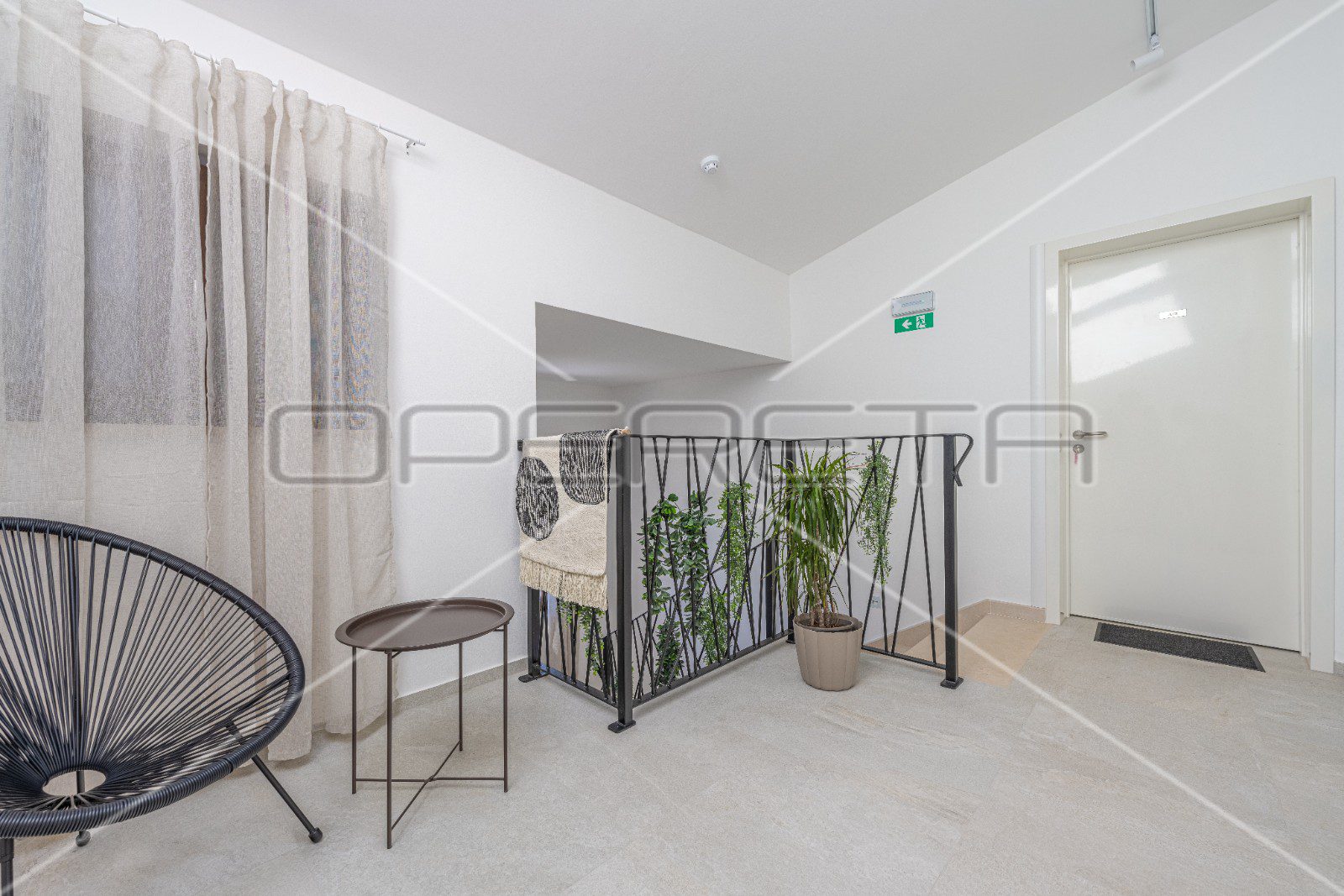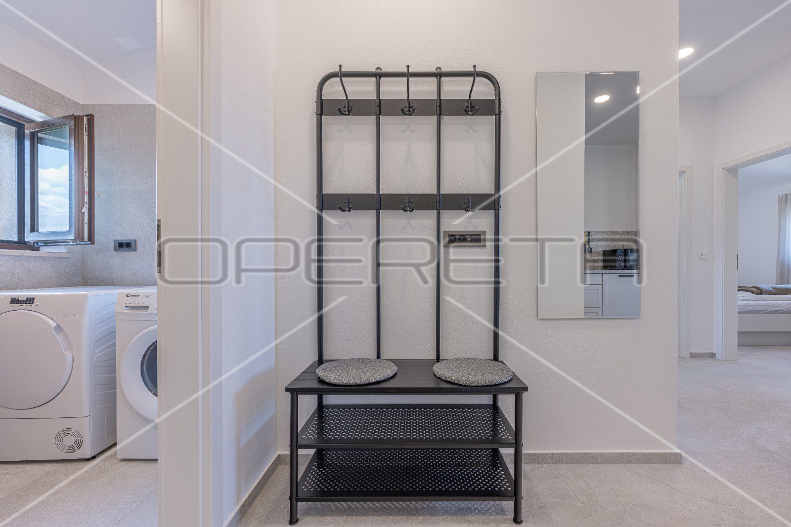 Sastoji se od hodnika, wc-a, kupaonice, ostave, dvije spavaće sobe i dnevnog boravka, kuhinje i blagovaonice po open space konceptu.