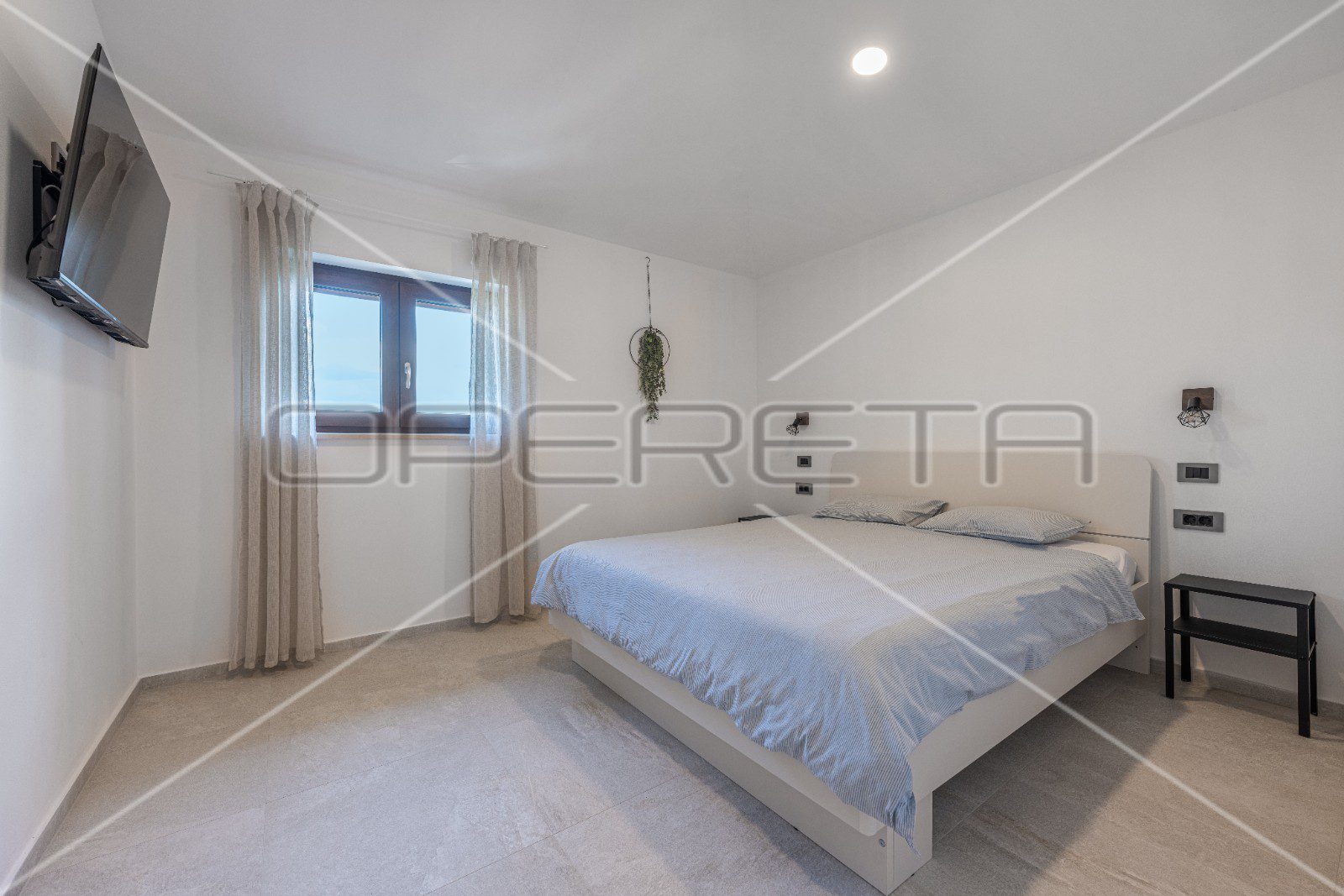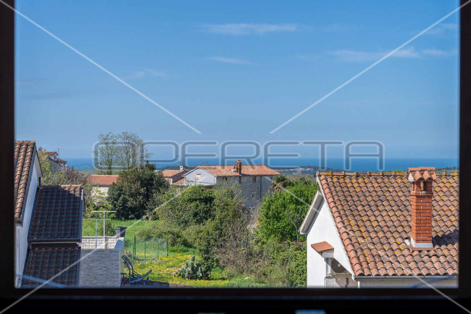 Stolarija je od PVC-a s troslojnim staklom i svi prozori imaju aluminijske škure.