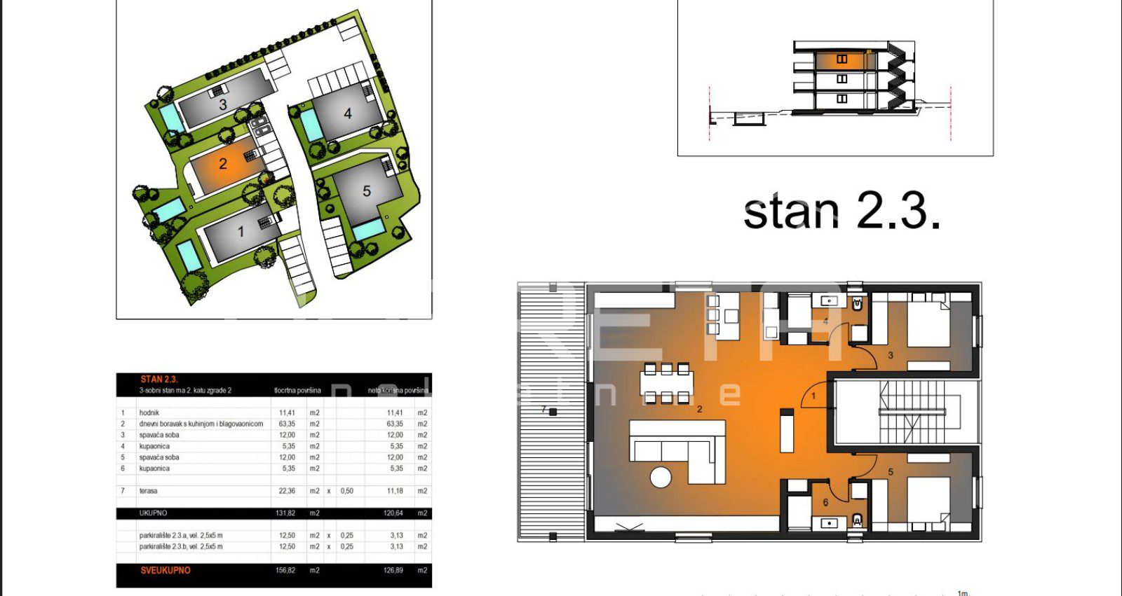 Ovaj stan 2.3 se smjestio na trećoj etaži odnosno na drugom katu vile 2.