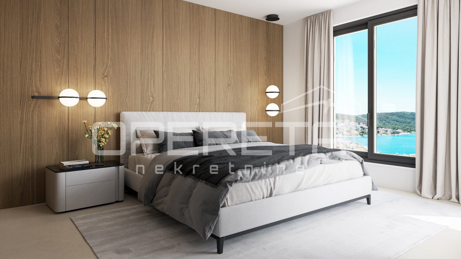 Prozori od poda do stropa povezuju interijer s eksterijerom, otvarajući pogled i pristup terasi koja nudi dodatni prostor za opuštanje ili zabavu.