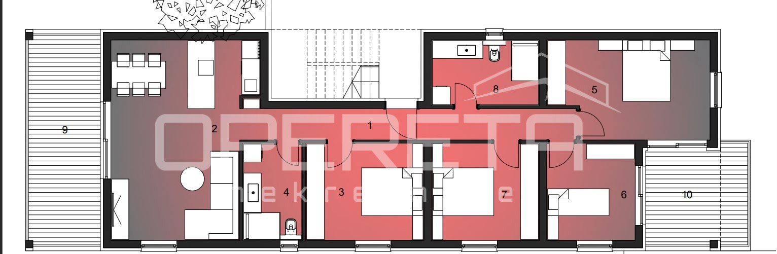 Ovaj stan 3.2 se smjestio na drugoj etaži odnosno prvom katu vile 3.