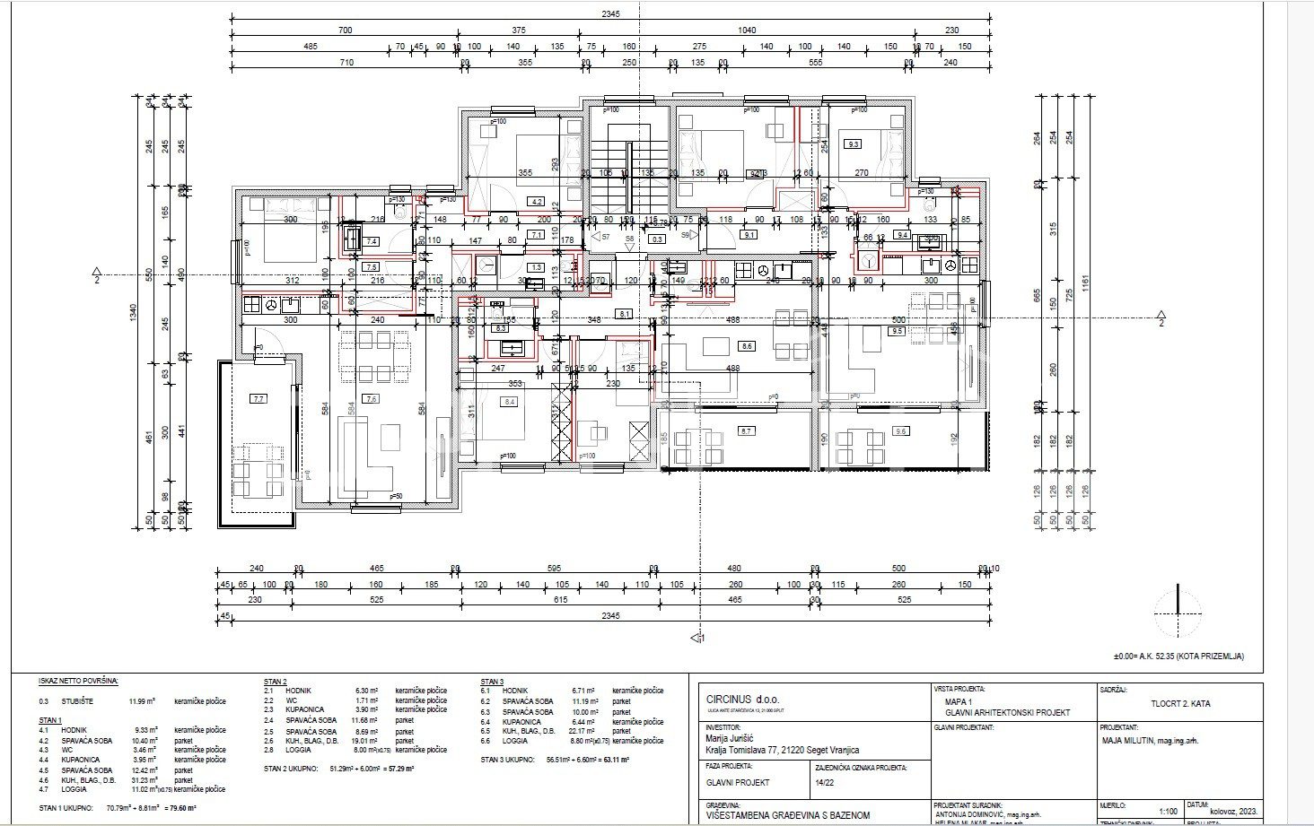 Dvosoban penthouse neto površine 57,29 m2, smješten je na drugom katu u novogradnji visoke kvalitete čiji je dovršetak planiran tijekom 2025. godine.