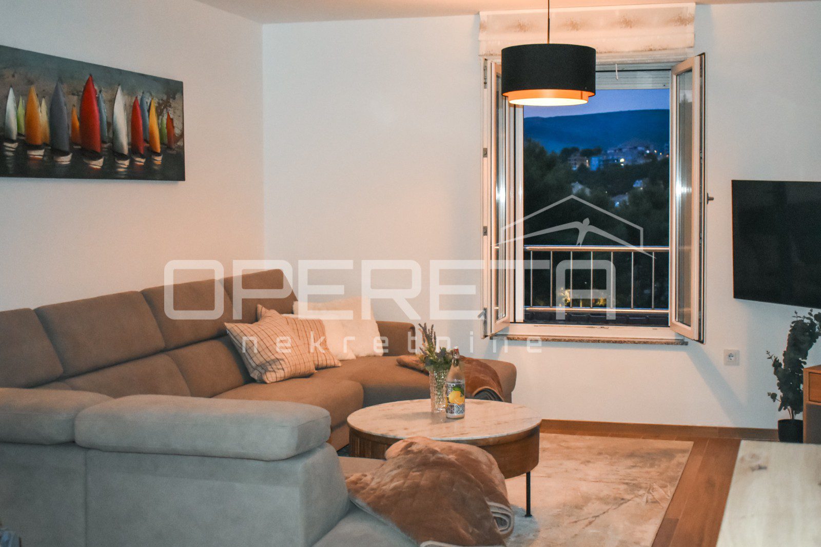 Ovaj stan predstavlja savršen spoj modernog komfora i prestižne lokacije , pružajući priliku za istinsko uživanje u ljepoti dalmatinske obale.
