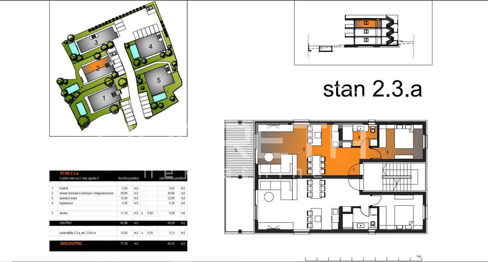 Ovaj stan 2.3a se smjestio na trećoj etaži odnosno drugom katu vile 2.