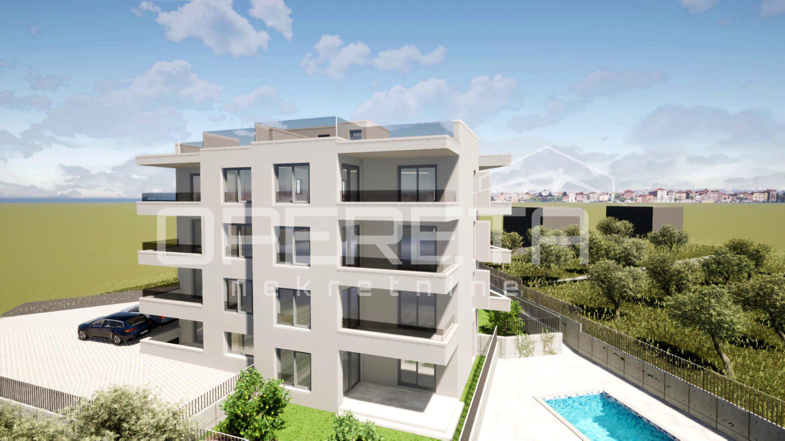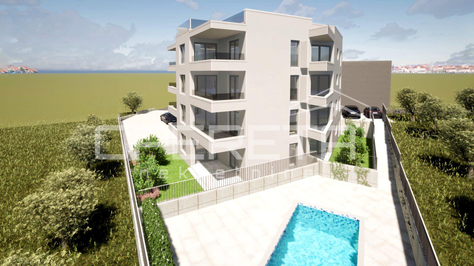 Čitav projekt zamišljen je kao mali moderan kompleks koji, uz kvalitetne stanove, svojim budućim vlasnicima pruža i dodatnu vrijednost kroz zajednički bazen. Idealan je za opuštanje tijekom toplih ljetnih dana, druženje s obitelji ili osvježenje nakon povratka s plaže, a dodatno podiže atraktivnost cijelog projekta i osigurava osjećaj luksuza na dohvat ruke.
