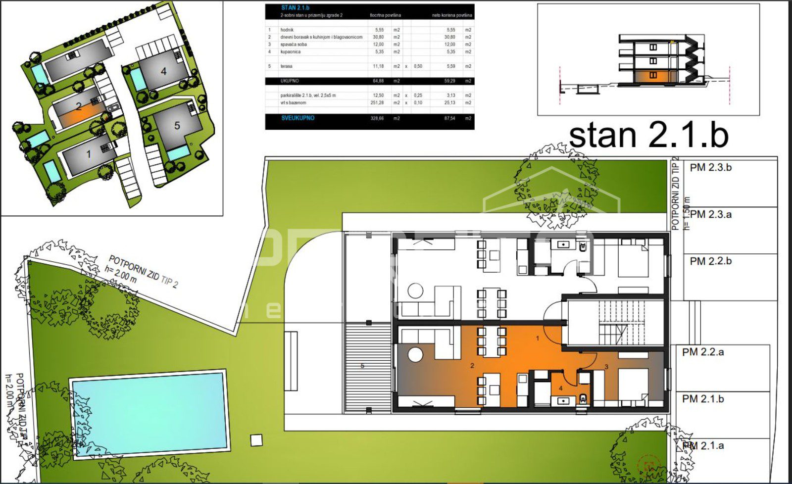 Ovaj stan 2.1b se smjestio na prvoj etaži odnosno u prizemlju vile 2.