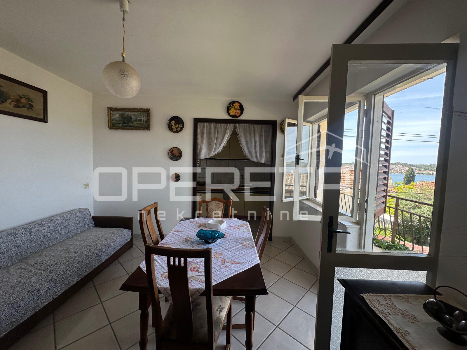 U privatnoj kući koja se sastoji od prizemlja i kata, na gornjoj etaži nalazi se stan površine 90 m². Stan se sastoji od četiri prostorije – tri spavaće sobe, kuhinje s blagovaonicom te dnevnog boravka. Prostor je izuzetno svijetao i prozračan, a iz dnevnog boravka i jedne spavaće sobe pruža se prekrasan pogled na more kroz velike prozore i s loggie.