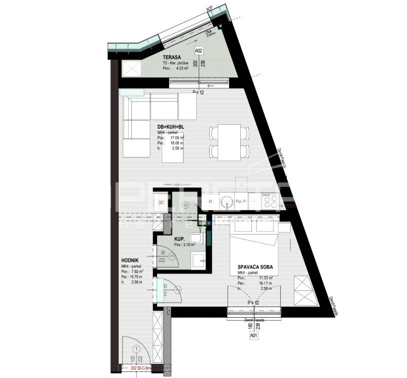Uz stan je moguće kupiti parkirno mjesto u garaži po cijeni od 25.000 € + PDV, a dostupna je i opcija godišnjeg najma garažnog mjesta (1.500 € + PDV) ili javne parkirne karte za svega 100 € godišnje.
