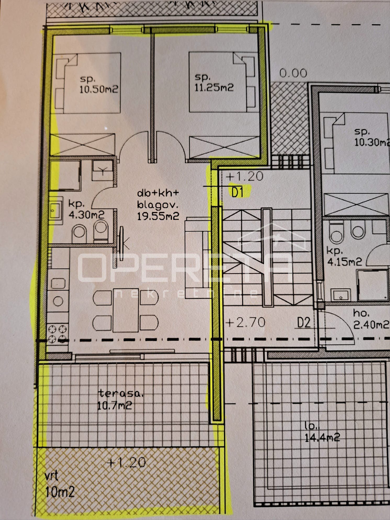 Nakon obračunatog koeficijenta stan D1 ima 67,21 m2.