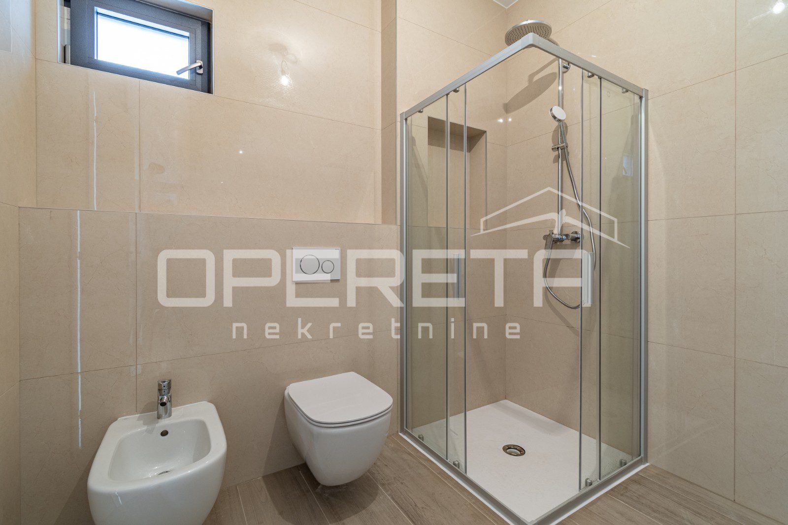 Stanu pripada lođa od 9, 20 m2, vrt od 23, 10 m2, spremište u prizemlju zgrade od 7,10 m2 te natkriveni parking od 12, 25 m2.