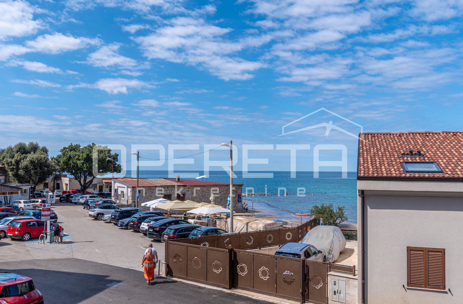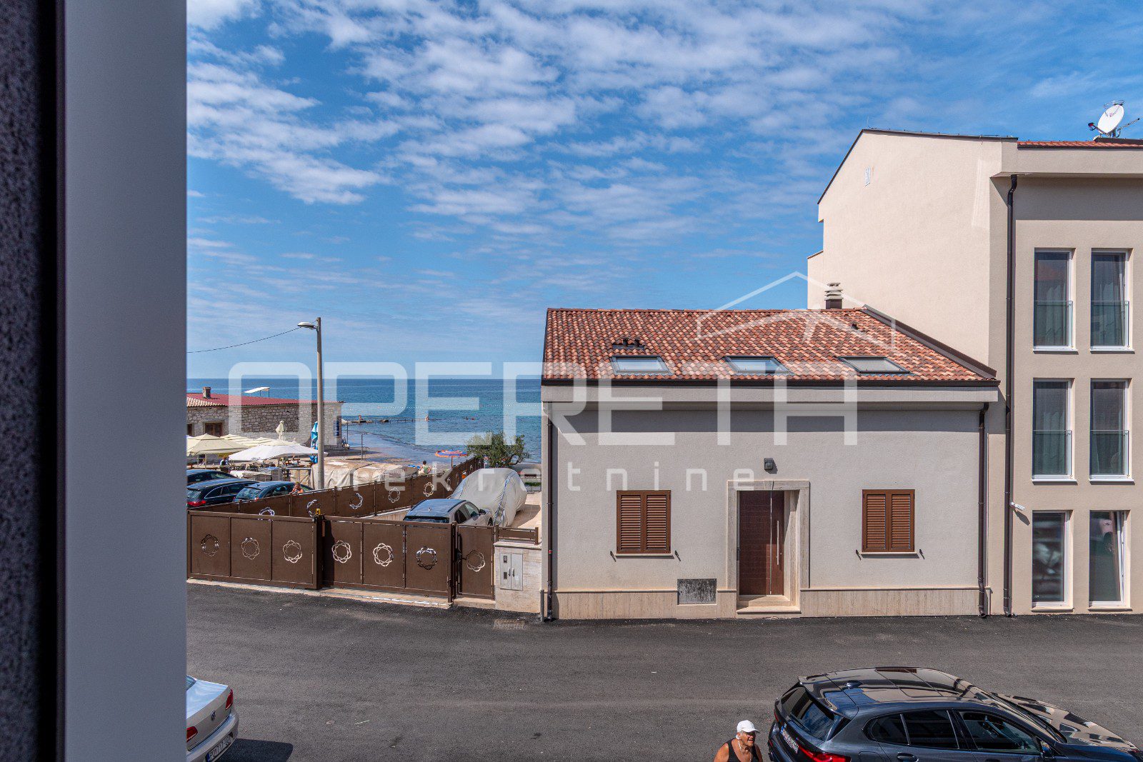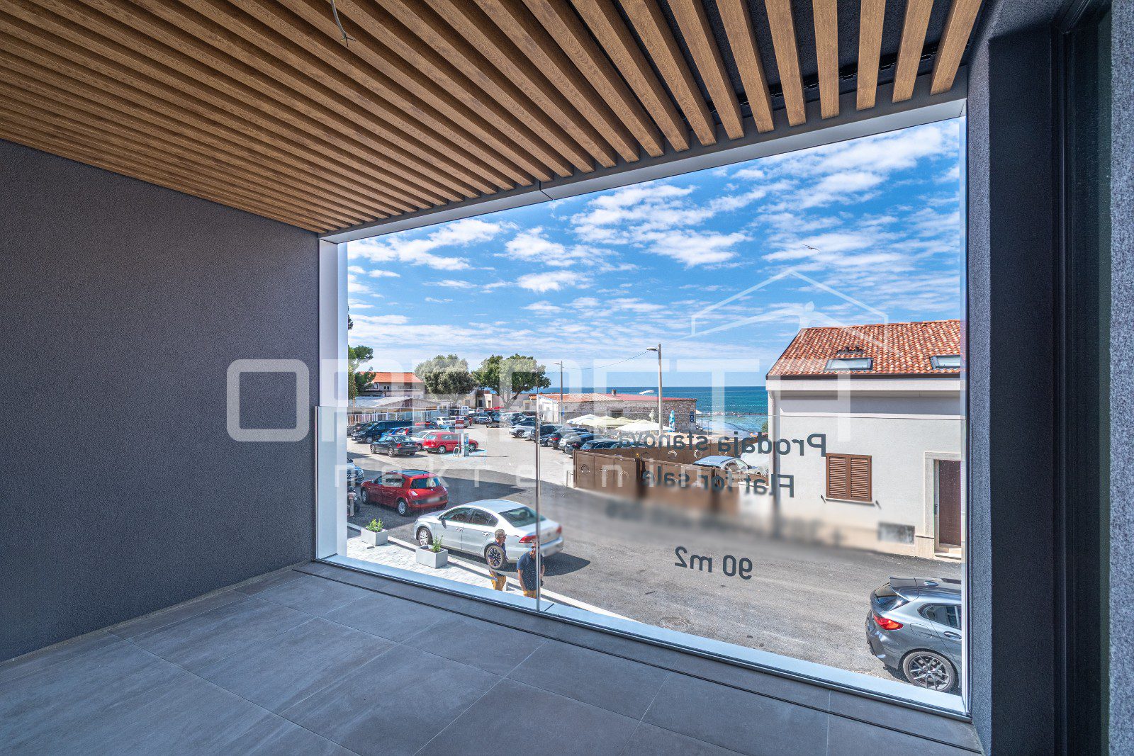 Iz naše ponude izdvajamo stan na atraktivnoj lokaciji u samom centru Umaga, smješten u prvom redu do mora, na prvom katu moderne zgrade visoke kvalitete gradnje. Stan ukupne površine 90,61 m² sastoji se od dvije spavaće sobe, suvremeno uređene 2 kupaonice te prozračnog dnevnog boravka s kuhinjom i blagovaonicom, a južna orijentacija osigurava obilje dnevne svjetlosti i prekrasan pogled prema moru i terase od 6,66 m2.