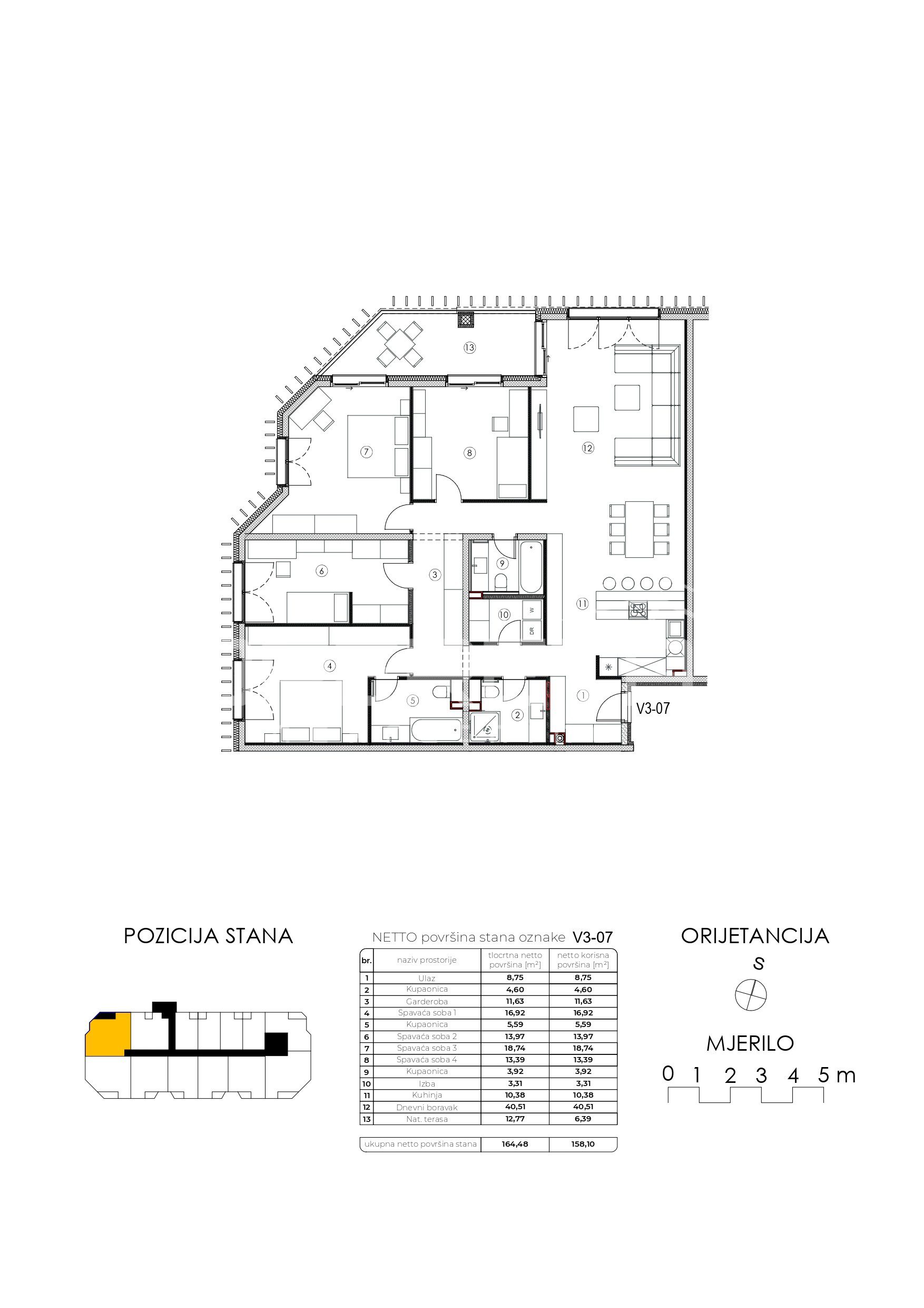 Smješten na trećem katu, ovaj prostrani stan od 158,1 m² dizajniran je za one koji cijene prozračnost i vrhunski komfor.